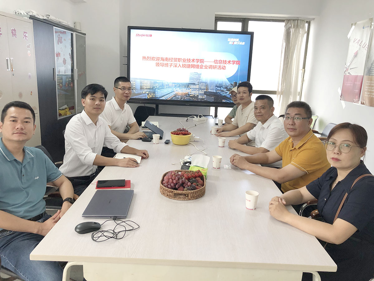 2023年5月26日,由bevictor伟德国际党总支书记符胜带队赴公司合作企业锐捷网络股份有限公司(海口公司)和浙江大华技术股份有限公司(海口公司)开展主题教育调研。本次调研受到公司热烈欢迎,并派出代表与公司就双方就产学合作发展等方面交换意见,双方代表进一步探讨了合作模式,就未来项目合作、实习实训、人才培养、课程共建等内容进行了深度交流。符胜书记表示通过本次调研走访进一步强化校企衔接、深化校企合作,校企双方共同发挥各自优势,对接自贸港经济社会发展战略,携手培养高质量的信息化应用型职业人才,服务海南自贸港建设。