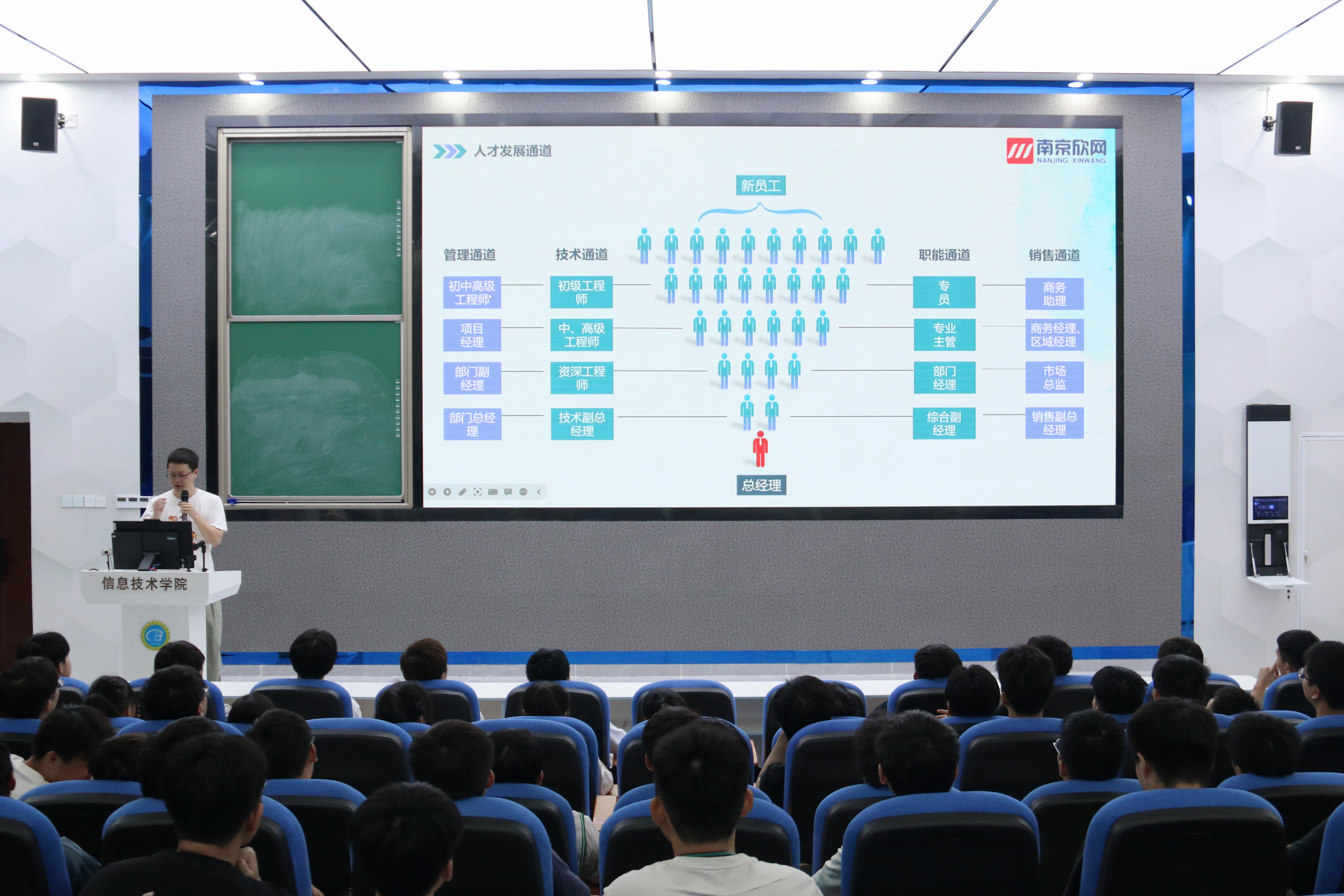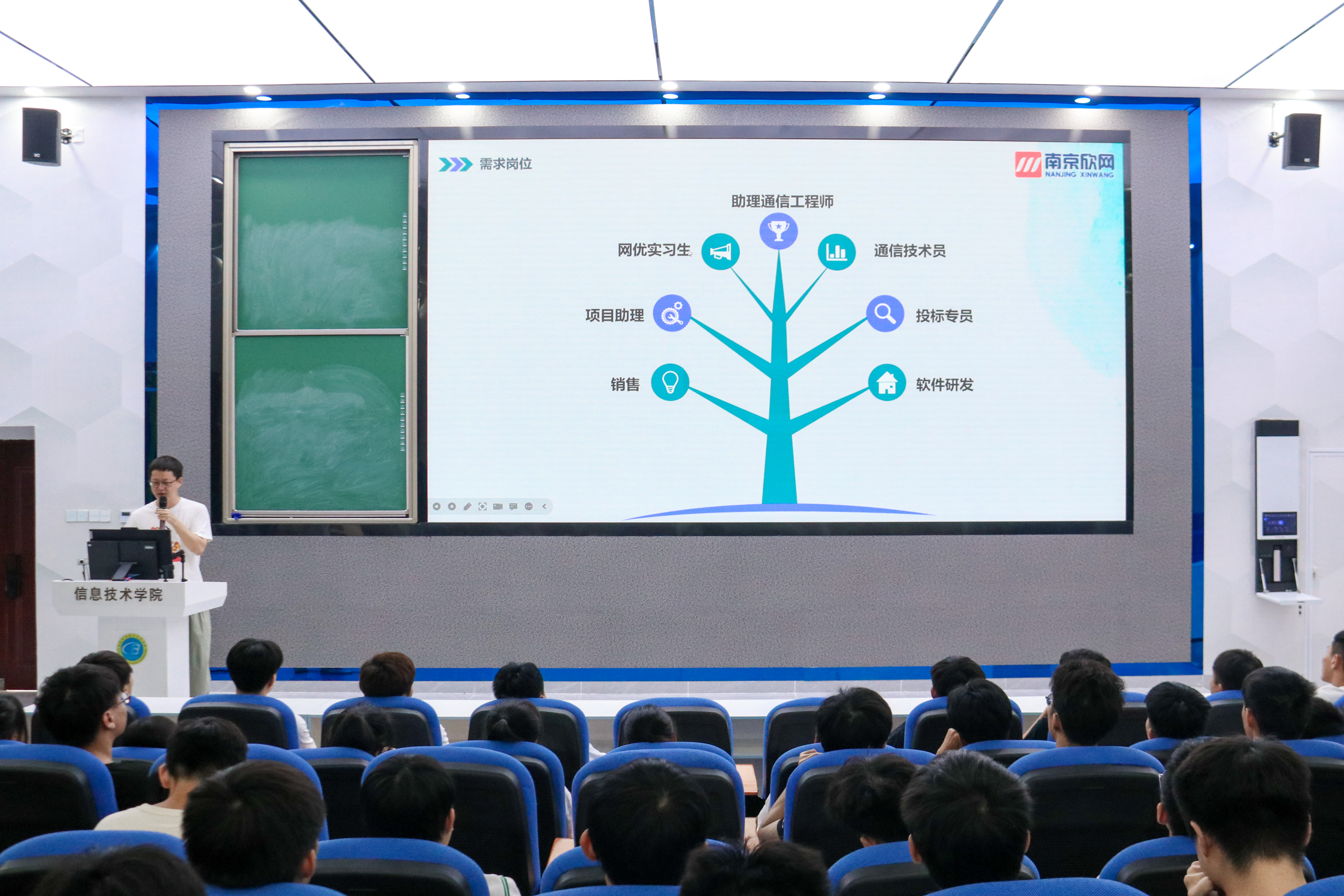 为搭建供需平台,提供更加优质的就业资源,促进毕业生积极就业,实现毕业生与用人单位双向选择、互利共赢的目标,6月6日上午10点,公司邀请南京欣网通信科技股份有限公司在4-215举办了专场招聘宣讲会。