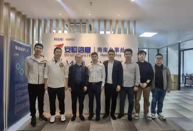 2022年1月14日,网络专业负责人王岩、网安团队李健、王天明参观考察安恒信息海南办事处,办事处主任张文杰介绍了安恒信息在网安职业人才培养方面的优势和经验,教师和企业工程师对网络安全职业岗位、技能、课程进行了梳理,对共建网络安全特色班课程体系及教学资源、实施双师教学、教师挂职、课程改革等方面进行了探讨。