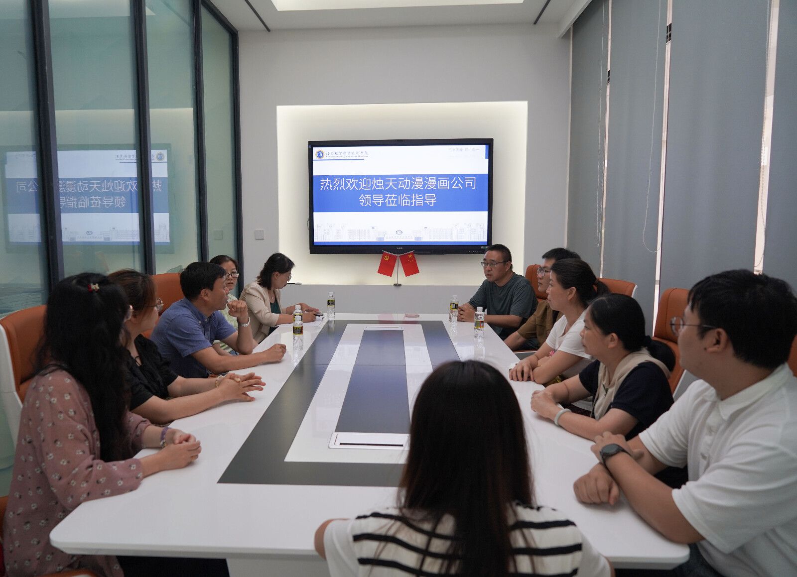 交流会伊始,单继周副经理对烛天动漫漫画公司一行的到来表示热烈欢迎,并详细介绍了公司数字媒体专业的情况。他强调,公司始终紧密贴合市场需求,致力于培养高素质应用型人才,通过不断优化课程体系、强化实践教学环节,着力提升员工的专业技能与创新能力。