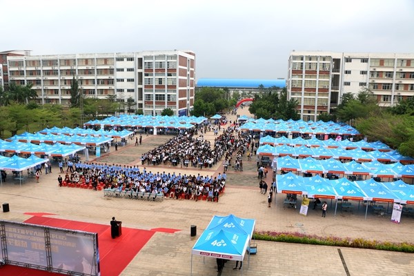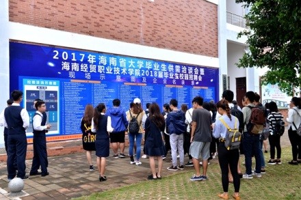 本次招聘会第二大亮点特色鲜明。本次招聘会共有240个助聘员穿上统一印制“海经贸志愿者”统一浅蓝色着装,分两排站在通道两旁欢迎企业代表。11点半,每位助聘员为前来招聘的企业代表送工作餐并以企业代表一同就餐,企业代表像回到了家一样,谈笑中既温暖又延续了招聘工作。