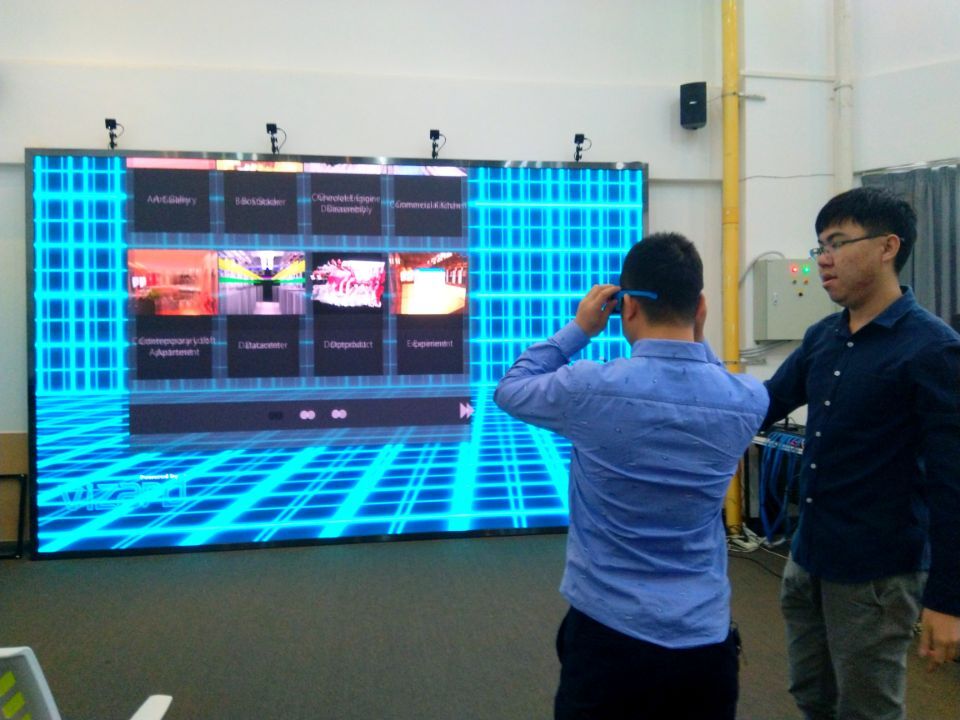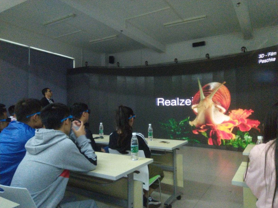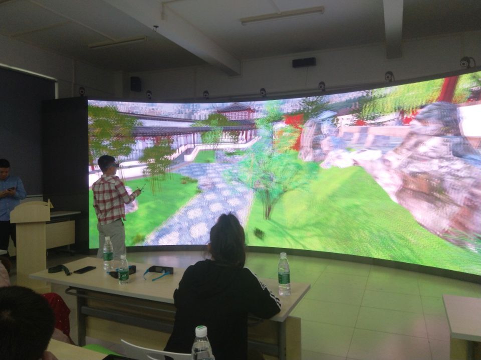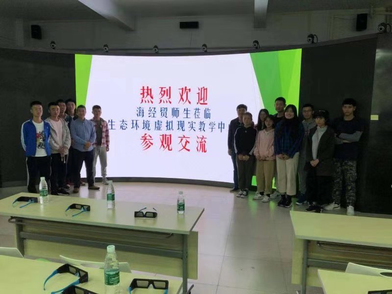 11月24日早我们又来到了广东轻工职业技术公司参观学习,经过对校园的简单的参观后,我们来到了由上海曼恒数字技术股份有限公司和广东轻工职业化技术公司合作建设的生态环境虚拟现实教学中心。公司的技术人员给我们上了一堂生动的VR专业课,通过高清的多面VR虚拟现实交互屏为我们展示虚拟现实技术的效果和多方面用途,受益良多。