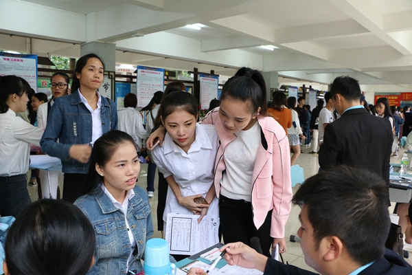 招聘会现场热闹非凡,苏宁等大型企业对应的招聘点排起了长队。公司应届毕业生们通过各个招聘单位的海报,宣传册等形式了解企业概况,发展前景,人员和招聘需求等信息。大部分应届毕业生们选择了心仪的企业投出简历,在面试中逻辑清晰,有条有理,自信的回答用人单位的提问,当场签署了就业协议。
