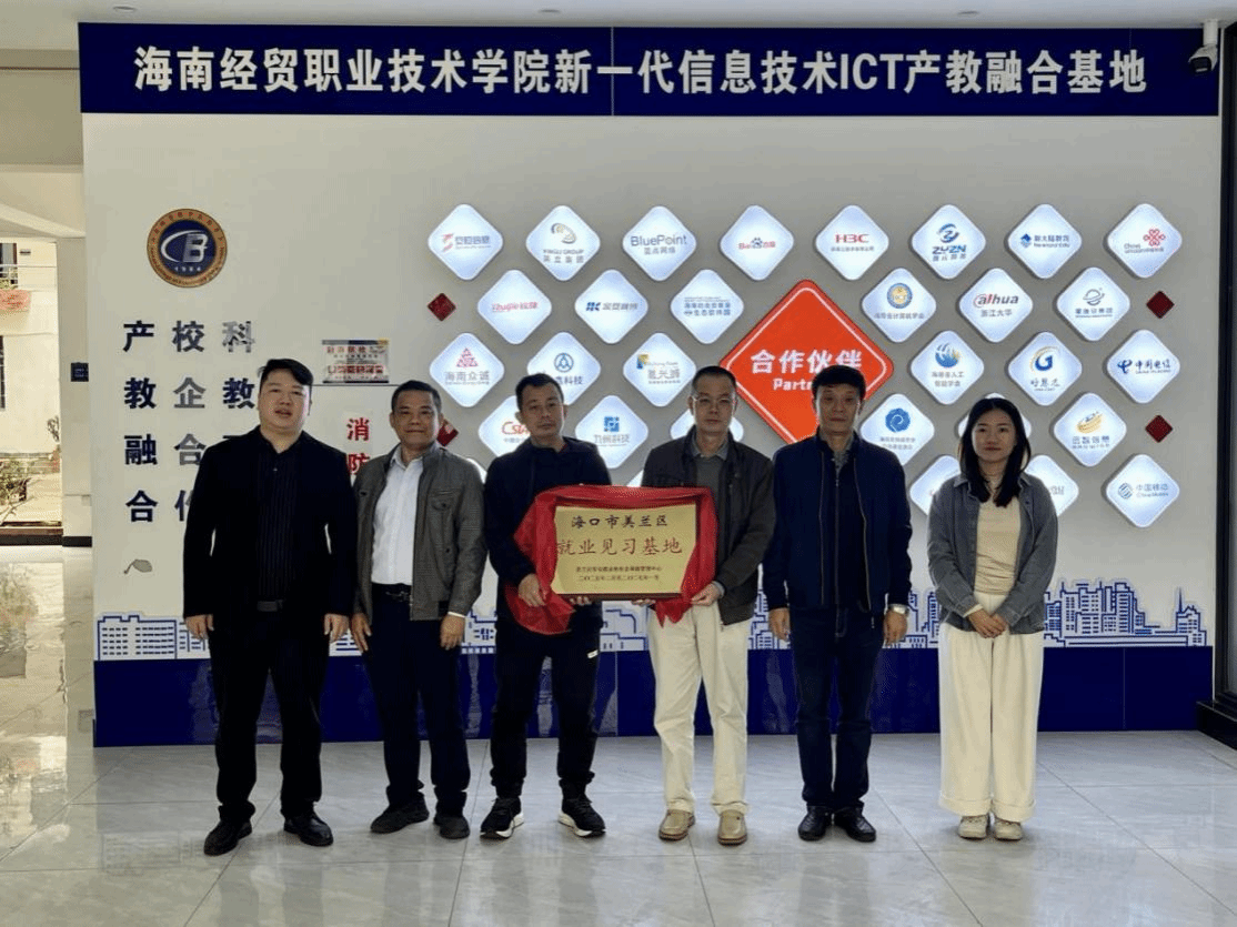 在授牌仪式上,黄伟主任给新一代信息技术ICT产教融合基地授予“海口市美兰区就业见习基地”牌匾。黄伟主任对基地的建设和取得的成就给以了高度评价,王忠经理表示,公司将充分发挥自身优势,为基地建设提供全面支持,通过实习实训、就业指导等活动,帮助员工提升实践能力,更好地适应市场需求,从而增强他们的就业竞争力,基地委托运营单位九州科技(海南)有限公司黄鸿飞总经理参加了授牌仪式。