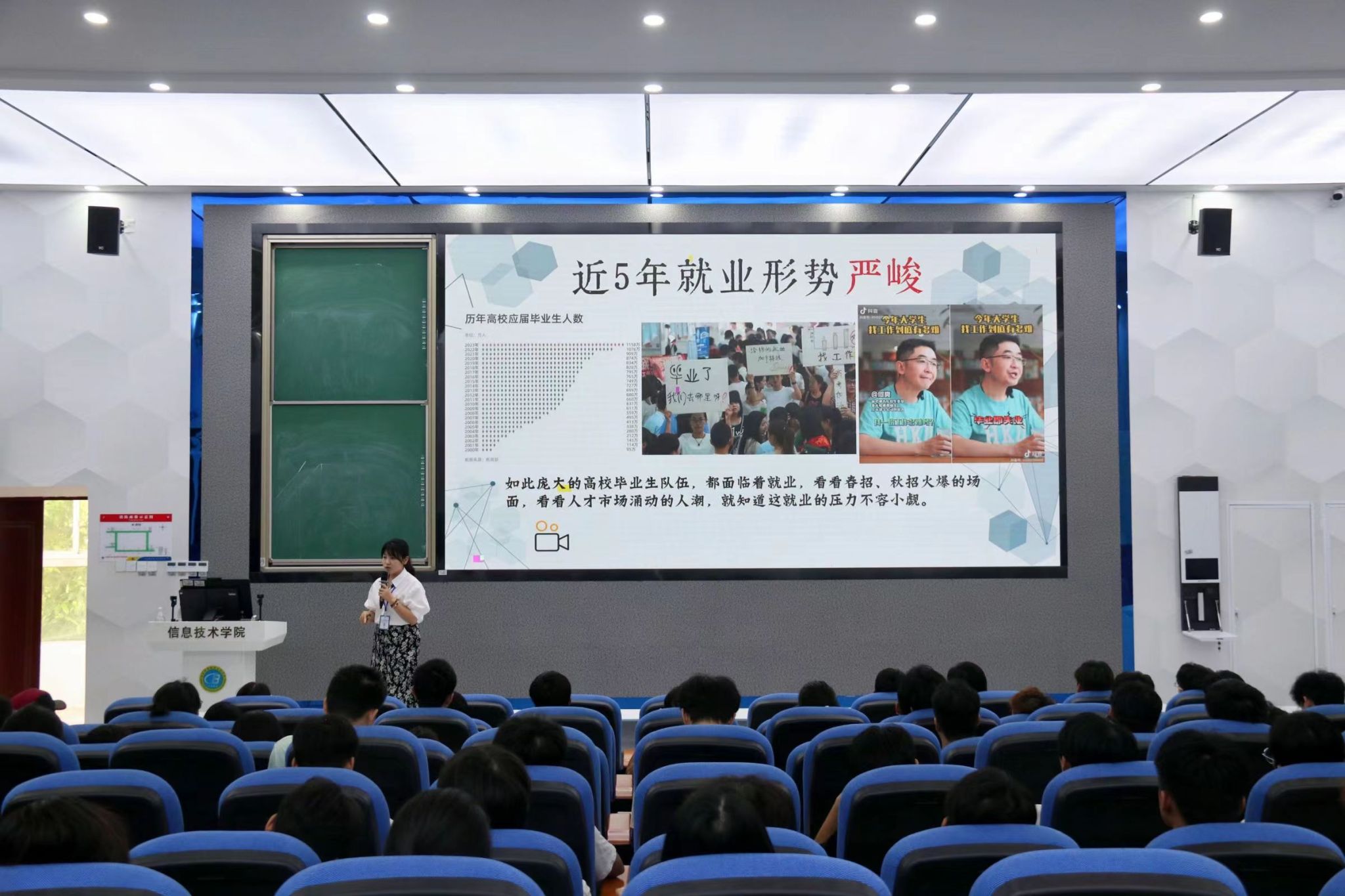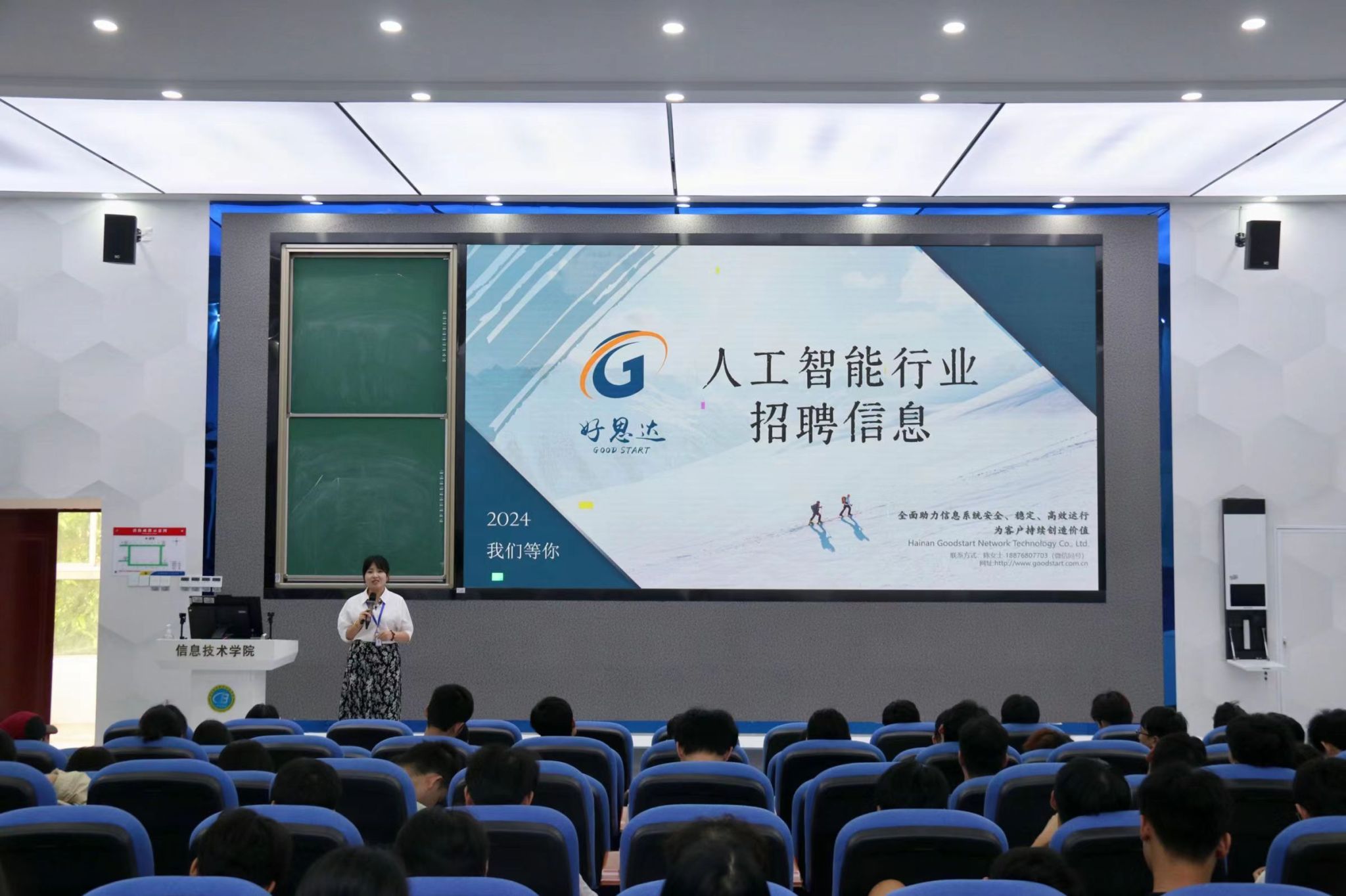 宣讲会上,王经理和董老师介绍了人工智能行业的最新动态和发展趋势,强调了AI训练师在当前社会的重要性。接着,他们详细解读了公司招聘的岗位、职责以及发展前景,让同学们对职业发展有了更清晰的认识。随后,王经理和董老师详细介绍了公司的薪酬福利体系,包括丰厚的绩效奖金、年终奖金等福利内容,以及完善的晋升机制,让同学们对在公司的职业发展充满期待。