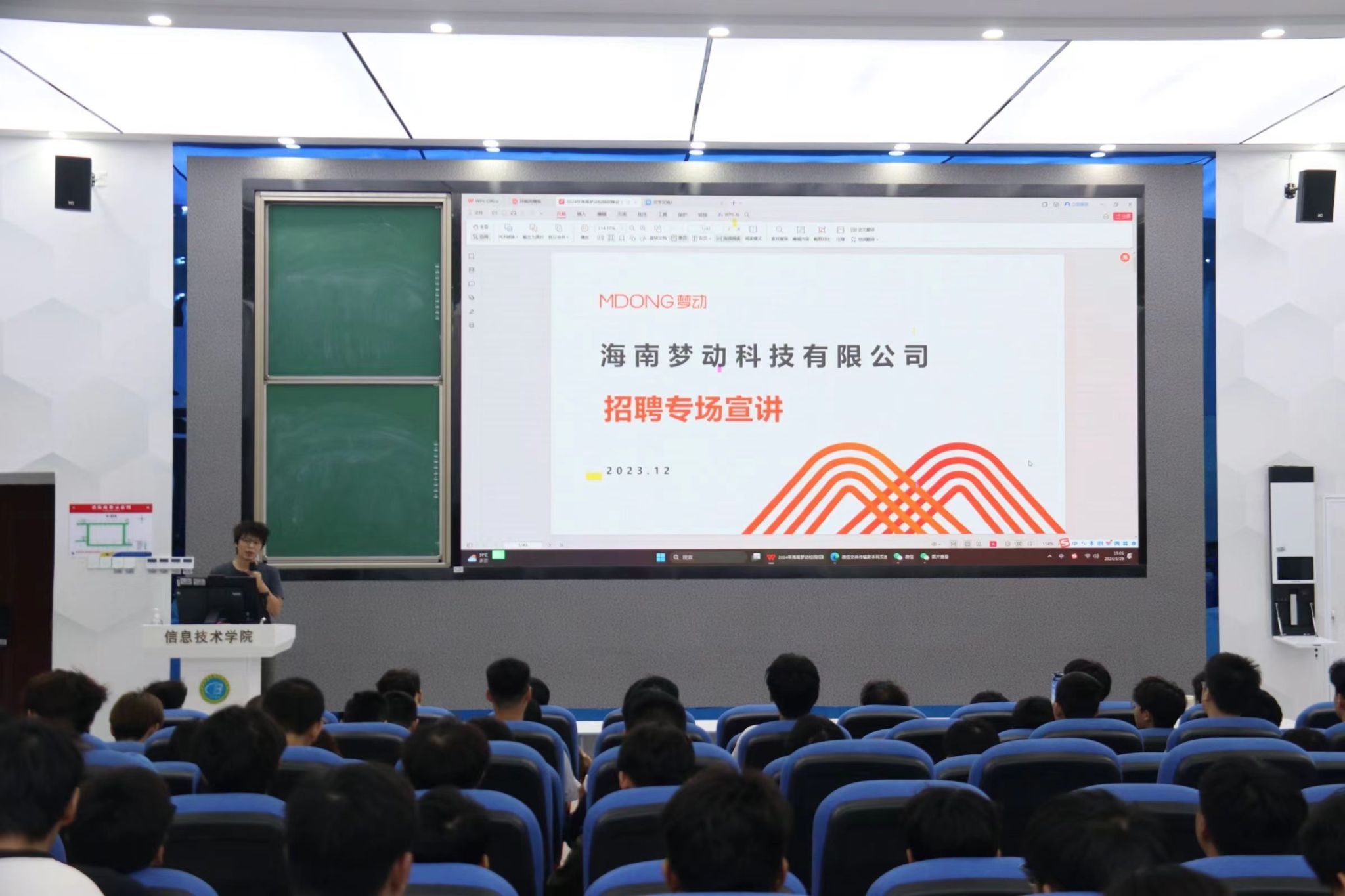 宣讲会上,海南梦动科技有限公司的负责人赵总首先向在场的同学们介绍了公司的独特定位以及五大业务板块,详细阐述了公司在大数据和人工智能领域的专业实力。接着,赵总针对同学们关心的几个问题进行了详尽解答,包括薪资结构、员工福利体系、多样化岗位和招聘流程等,使同学们对公司的整体情况有了更为深入的了解。此外,赵总还结合自身丰富的经验和经历,向同学们讲述了如何在职场中生存和成长,分享了他的职场心得和宝贵建议。现场互动积极、气氛热烈,同学们收获满满。宣讲会的最后,就业辅导员吴淑亲深入剖析了简历撰写的关键要素,让同学们深刻认识到简历在求职过程中的重要作用。