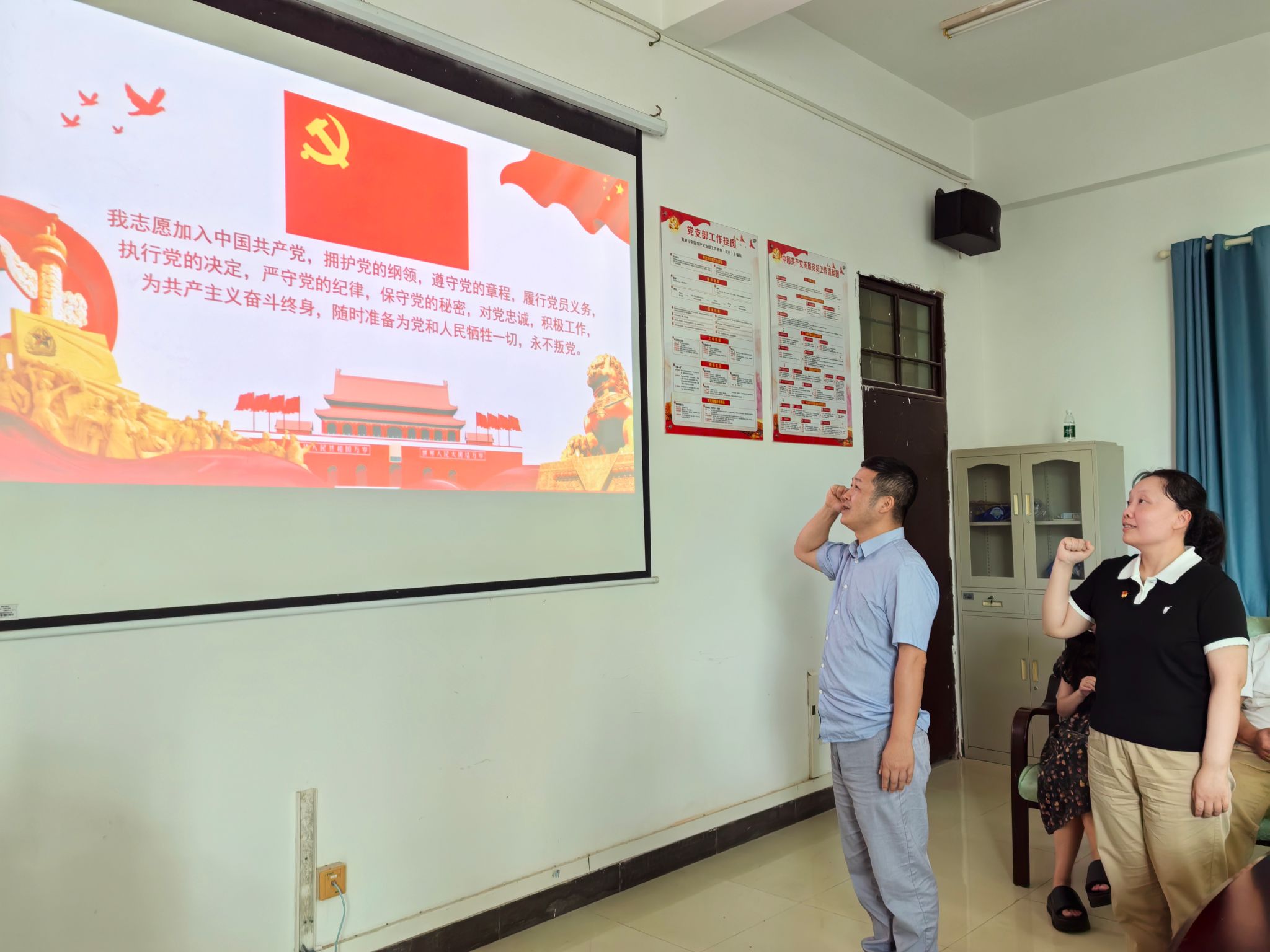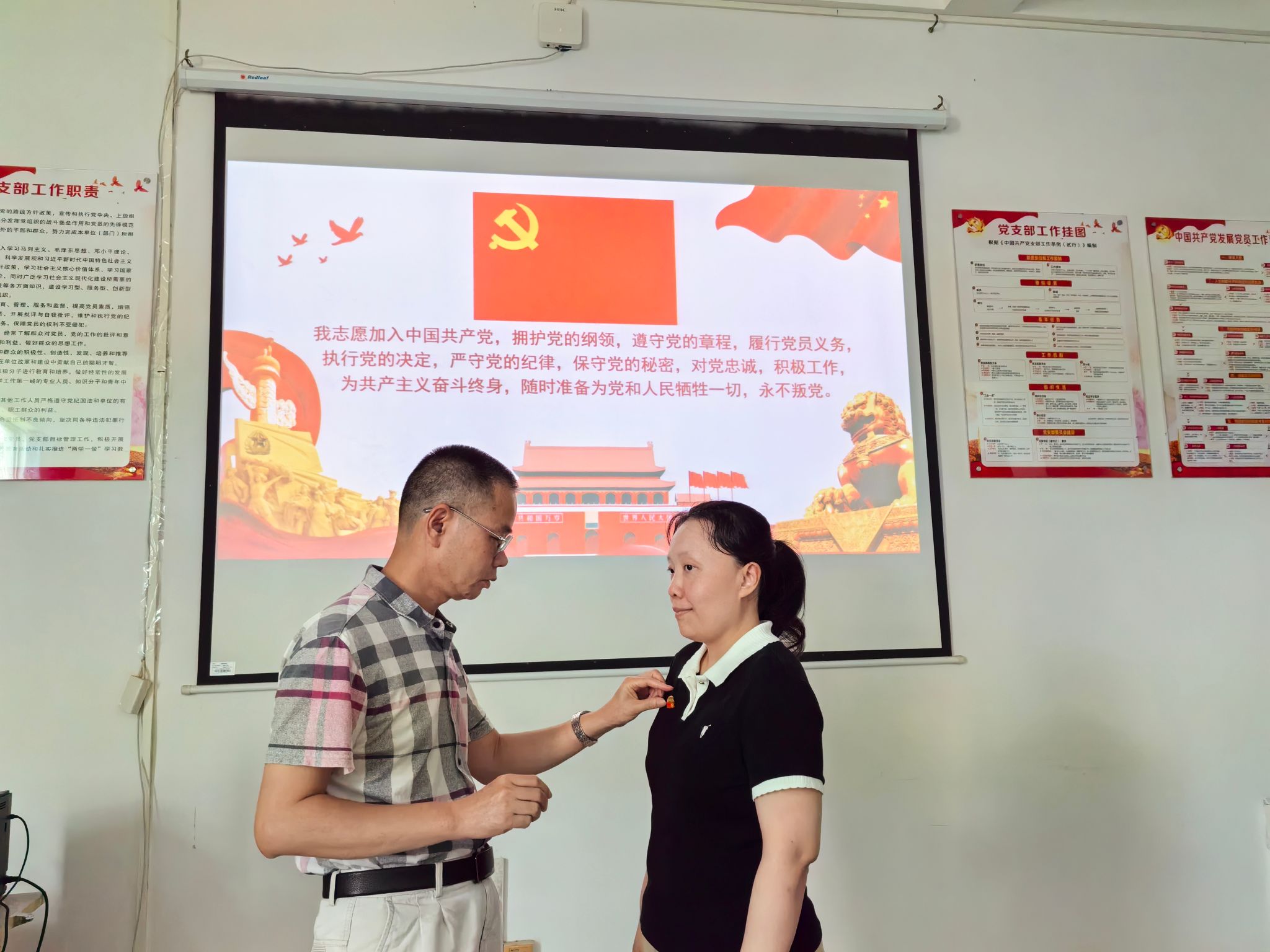在充分讨论环节,与会党员逐一发表意见,对杨博同志的综合素质给予高度评价,并就其如何进一步平衡教学科研与党务工作提出建议。经无记名投票表决,大会全票通过杨博同志转为中共预备党员的申请。党总支委员王忠同志现场为其佩戴党徽,党支部书记康东同志带领杨博同志面向党旗庄严宣誓,铿锵有力的誓言回荡在会议室中。