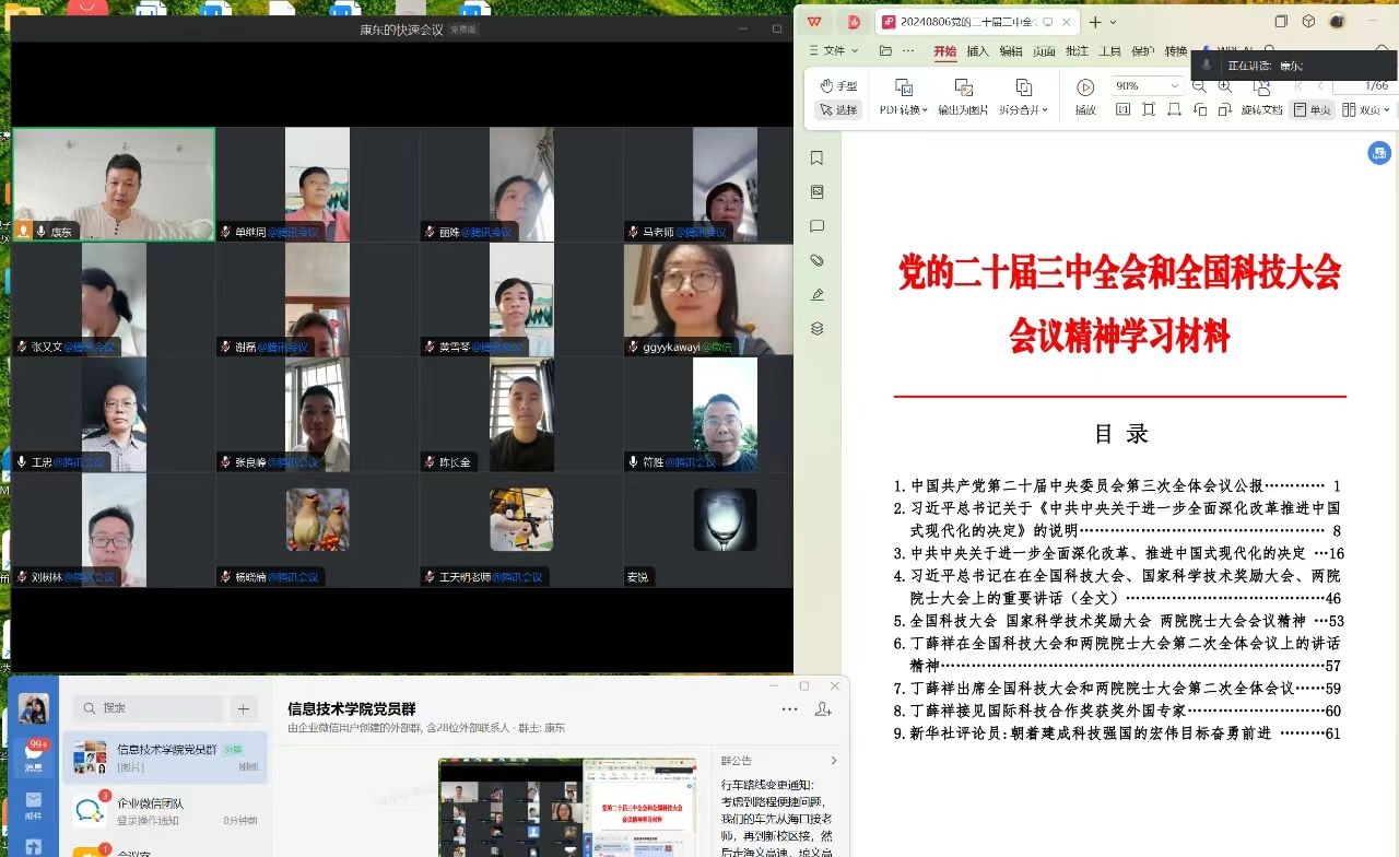 2024年8月8日,为深入学习、广泛宣传和切实贯彻党的二十届三中全会精神和全国科技大会会议精神。bevictor伟德国际教工党支部召开全体党员会议,旨在将全院广大党员干部和师生的思想和行动统一到全会精神上来,共同为实现党的二十大确定的目标任务凝聚力量。会议由党支部书记康东同志主持,教工支部全体党员参与。