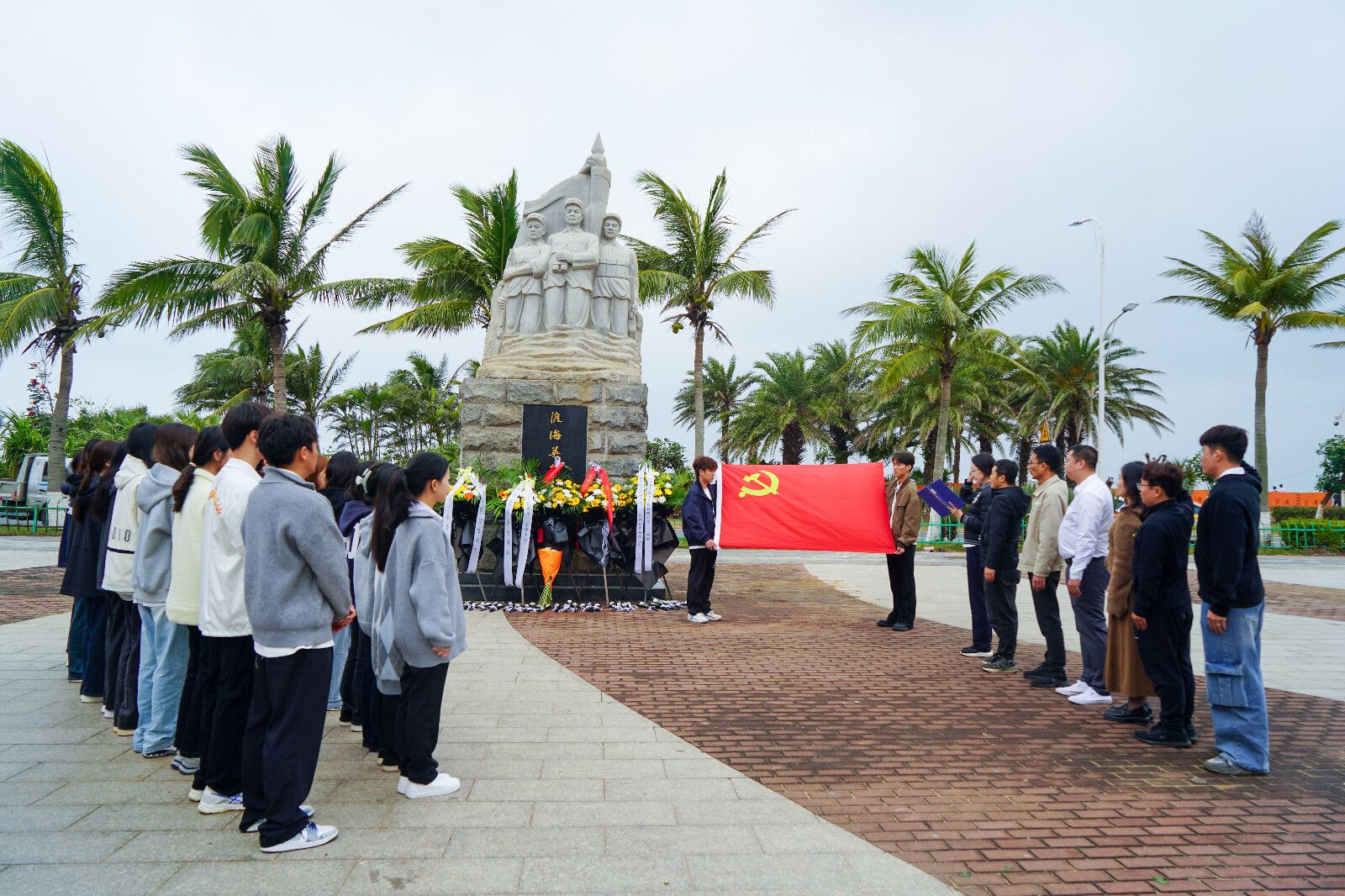 为弘扬革命精神,传承红色基因,扎实开展深入贯彻中央八项规定精神学习教育,2025年4月1日下午,bevictor伟德国际教师党支部与员工党支部在白沙门渡海作战纪念广场联合开展了“追忆渡海英雄,赓续革命薪火”主题党日活动。本次活动由邱叶同学主持,教师党支部书记康东老师、员工党支部书记代晓明老师,教师党支部委员王天明老师、靳向峰老师、员工党支部委员蔡守正老师、符传栋老师、员工党员、入党积极分子以及团学干部共同参与。