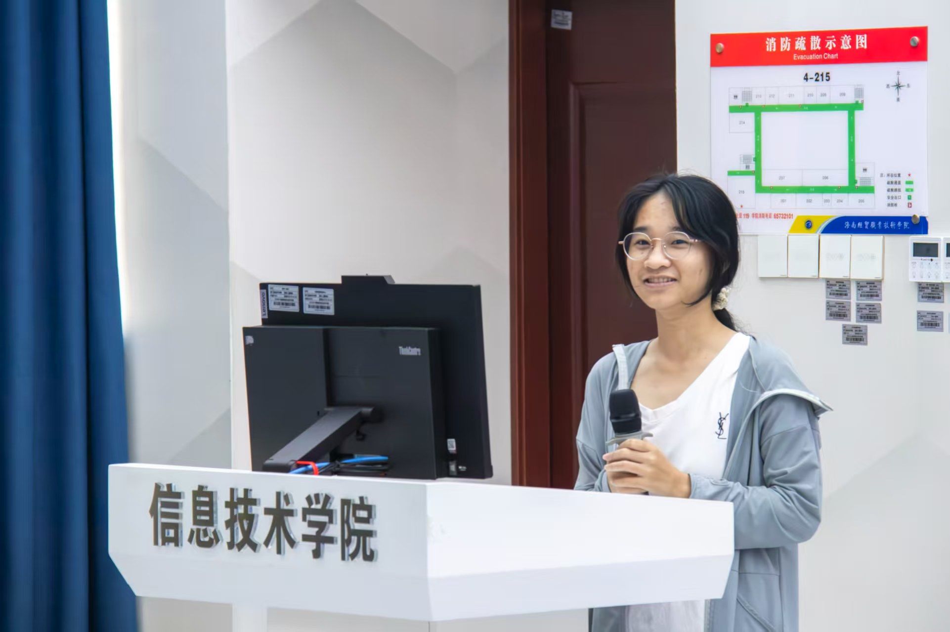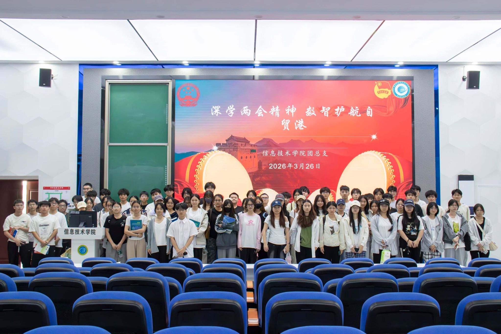 在两会精神专题学习环节,主讲同学围绕2026年全国两会核心部署,重点解读科技自立自强、数字经济、海南自贸港数字化建设等与信息技术专业高度相关的内容,结合微视频学习与现场提问,让理论学习更直观、更深入。