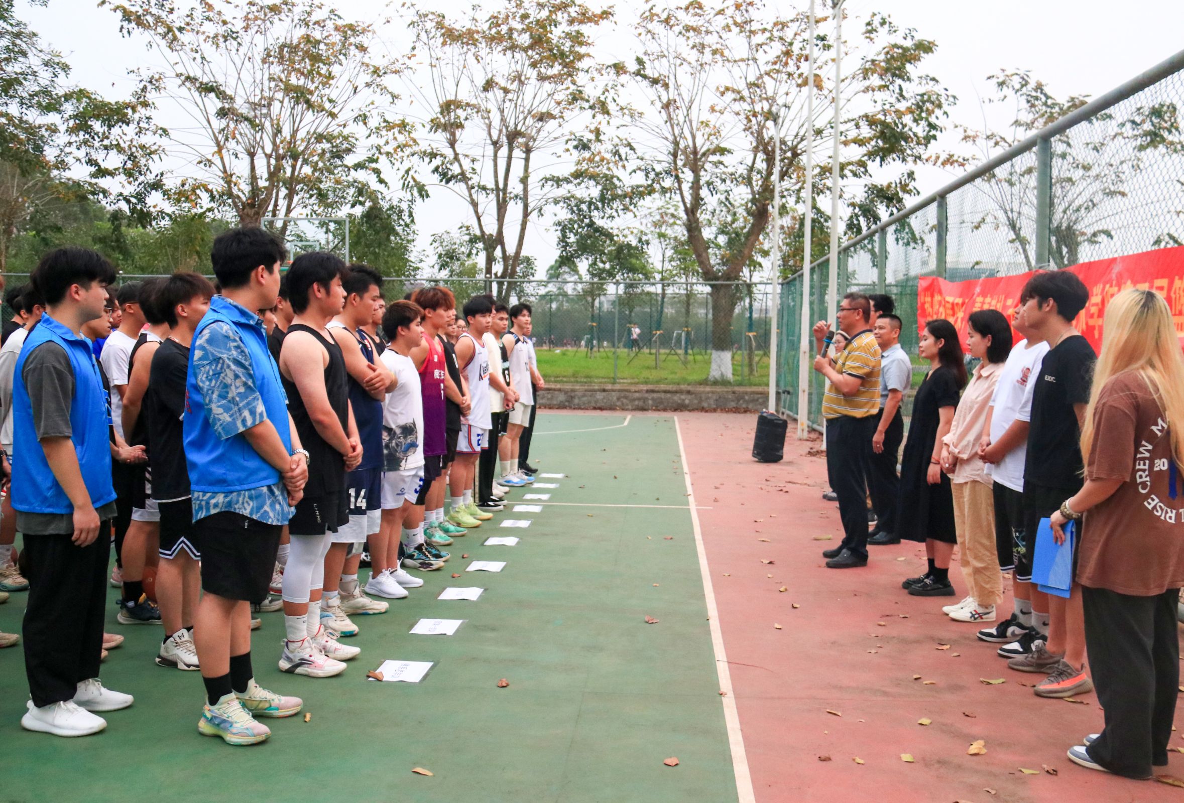 活动伊始,黄守官副书记致开幕词,指出举办本次比赛不仅有助于同学们展示积极向上的健康精神面貌,还能促进同学们互相学习,建立良好的友谊,并希望同学们能够在比赛中发现自我价值,发挥团队作战精神,协作精神和集体精神,同时预祝本届篮球赛取得圆满成功。随后正式进入比赛,比赛一开始便进入了白热化,漂亮的传球、默契的配合、严密的防守,一幕幕精彩的瞬间,翻起了一个又一个高潮,一次次精准的投篮更是引来了场外阵阵呐喊欢呼声。