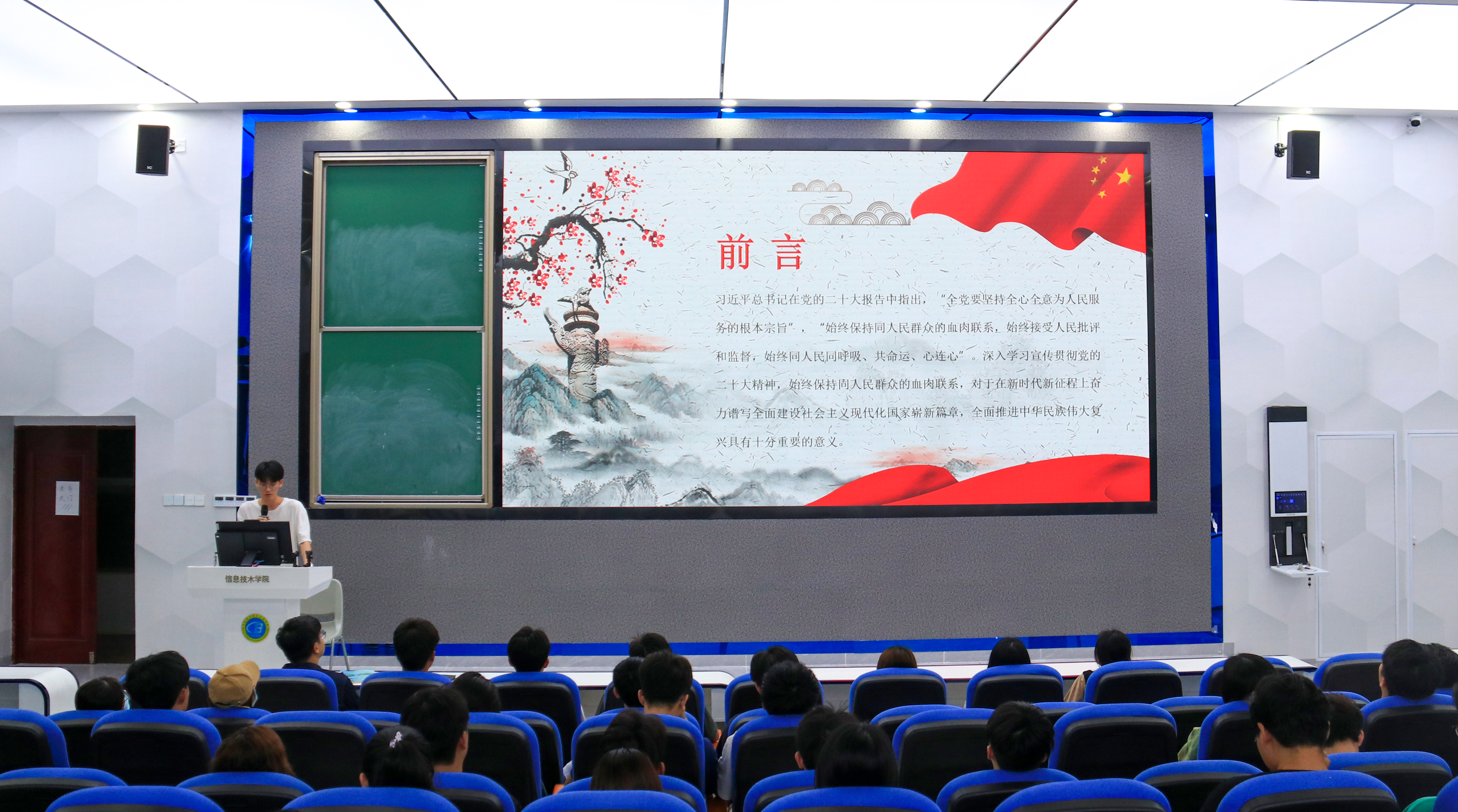 首先,全体入党积极分子深入学习党的二十大精神,观看党的二十大报告视频,共同学习党的二十大召开的重要内容、党的理想信念、党的基本性质、党的行动指南等。同学们进行深入思考并积极回答,纷纷表示将以实际行动争取早日入党,努力把握新时代的机遇,奋进青春新征程。