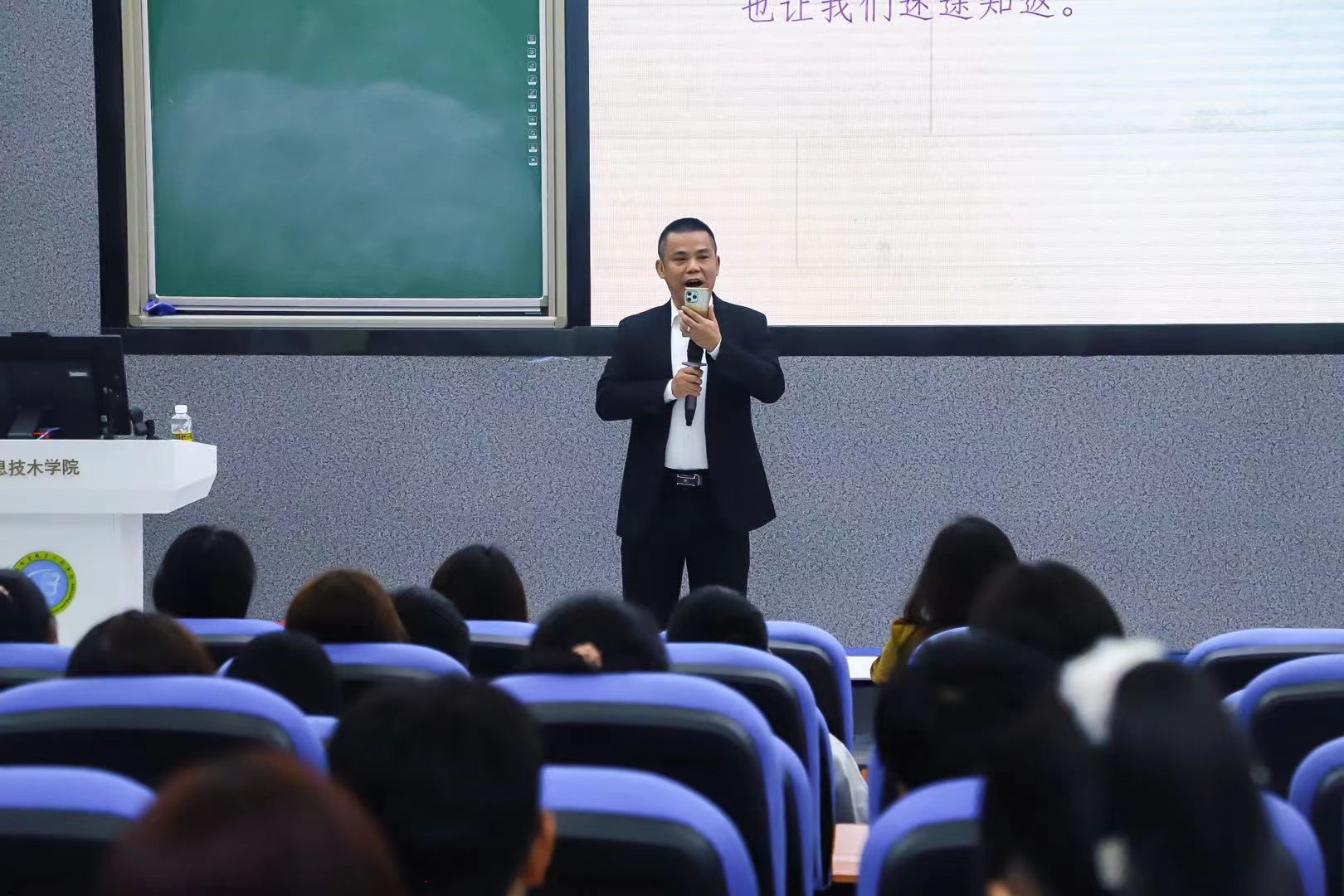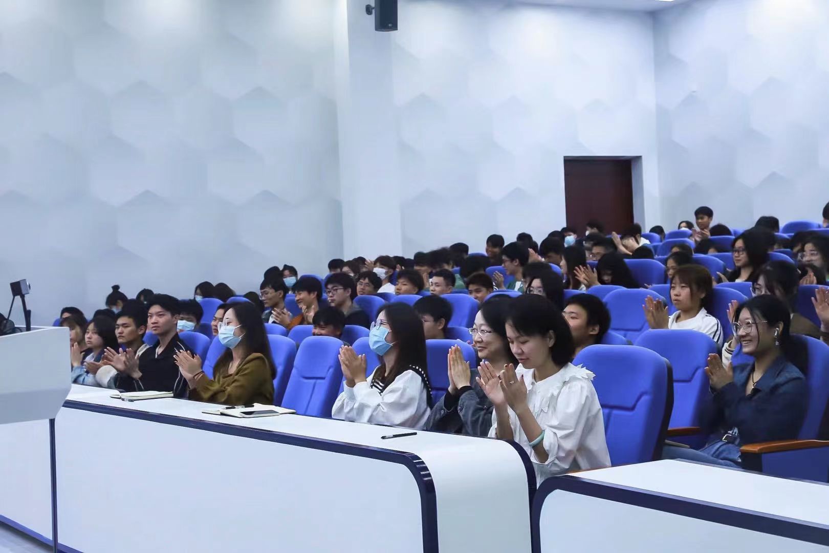 如符胜书记所说,快乐总是短暂的,本次讲座临近尾声,符胜书记歌唱《游子吟》和《把一切献给党》,呼吁大家学会珍惜父母、珍惜友情、珍惜师生情,号召大家永远跟党走。符胜书记的活力感染了整个现场,在经久不息的掌声、此起彼伏的欢呼下,圆满结束了本次讲座。