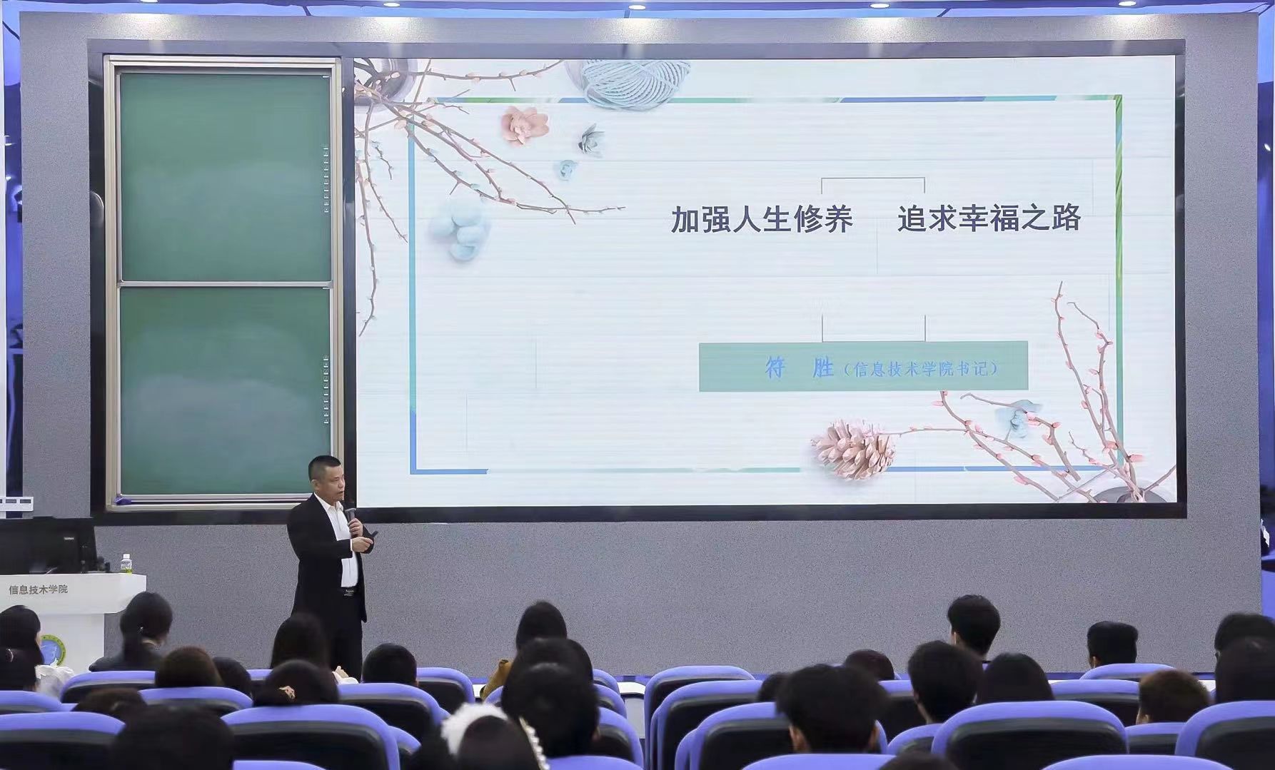 岁月如风,相遇即是缘。2023年3月9日晚上八点,bevictor伟德国际在4-215举办“加强人生修养,追求幸福之路”主题讲座,由公司党总支书记符胜主讲,全体辅导员及学子们相聚一堂,共同聆听。学工办负责人唐图主持讲座。
