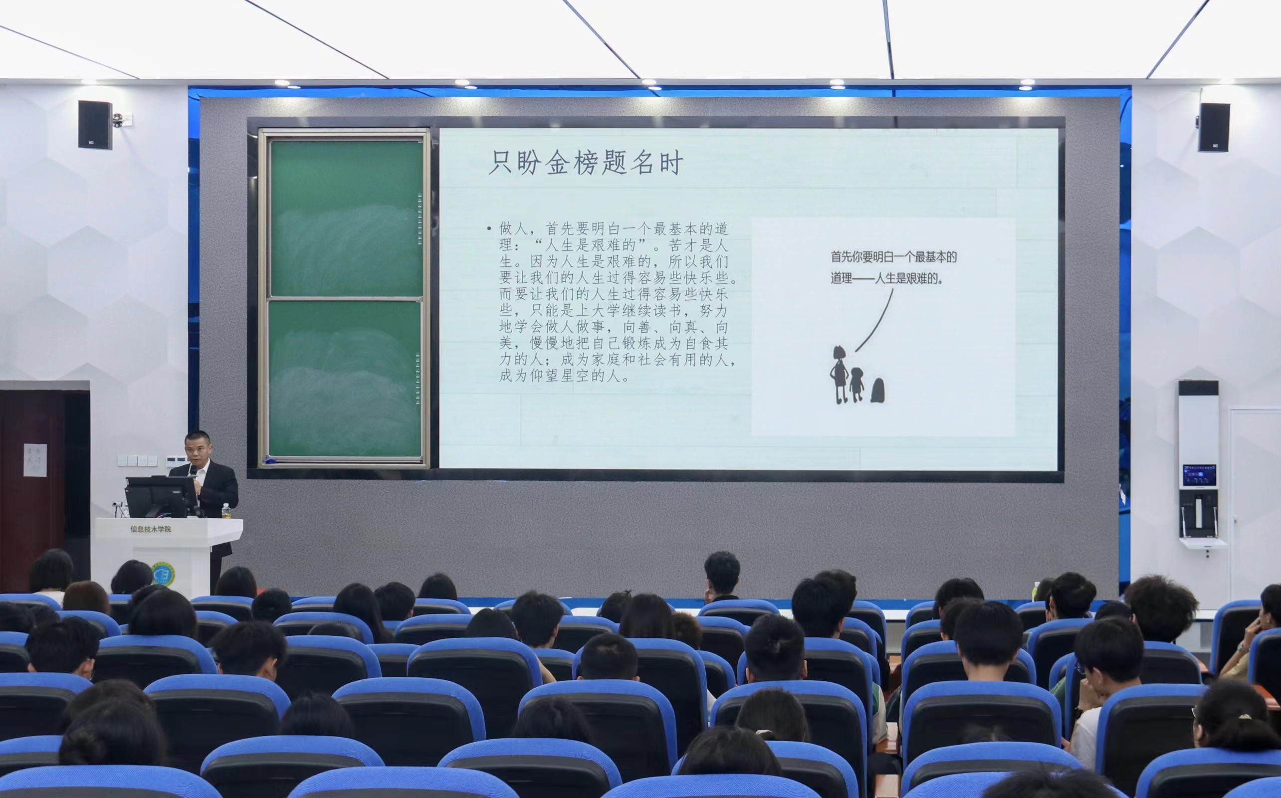 讲座伊始,符胜书记告诉学子们,天边的星辰犹如我们灿烂的理想,我们总觉得没有办法触摸到它。其实它就在我们的心中,只要我们把每天每一件事做好了,那么我们的心中就会有点点滴滴的星光,慢慢就汇成一束光芒,星辰就会展现在我们的面前,指引我们前进的道路,也能让我们迷途知返。
