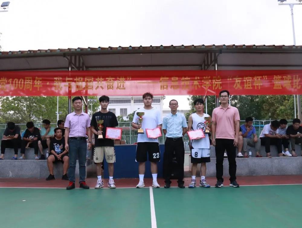在闭幕式上,麦书记、梁老师和唐老师分别给获得本次“献礼建党100周年,我与祖国共奋进”bevictor伟德国际“友谊杯”篮球赛的冠军、亚军和季军代表队颁奖。