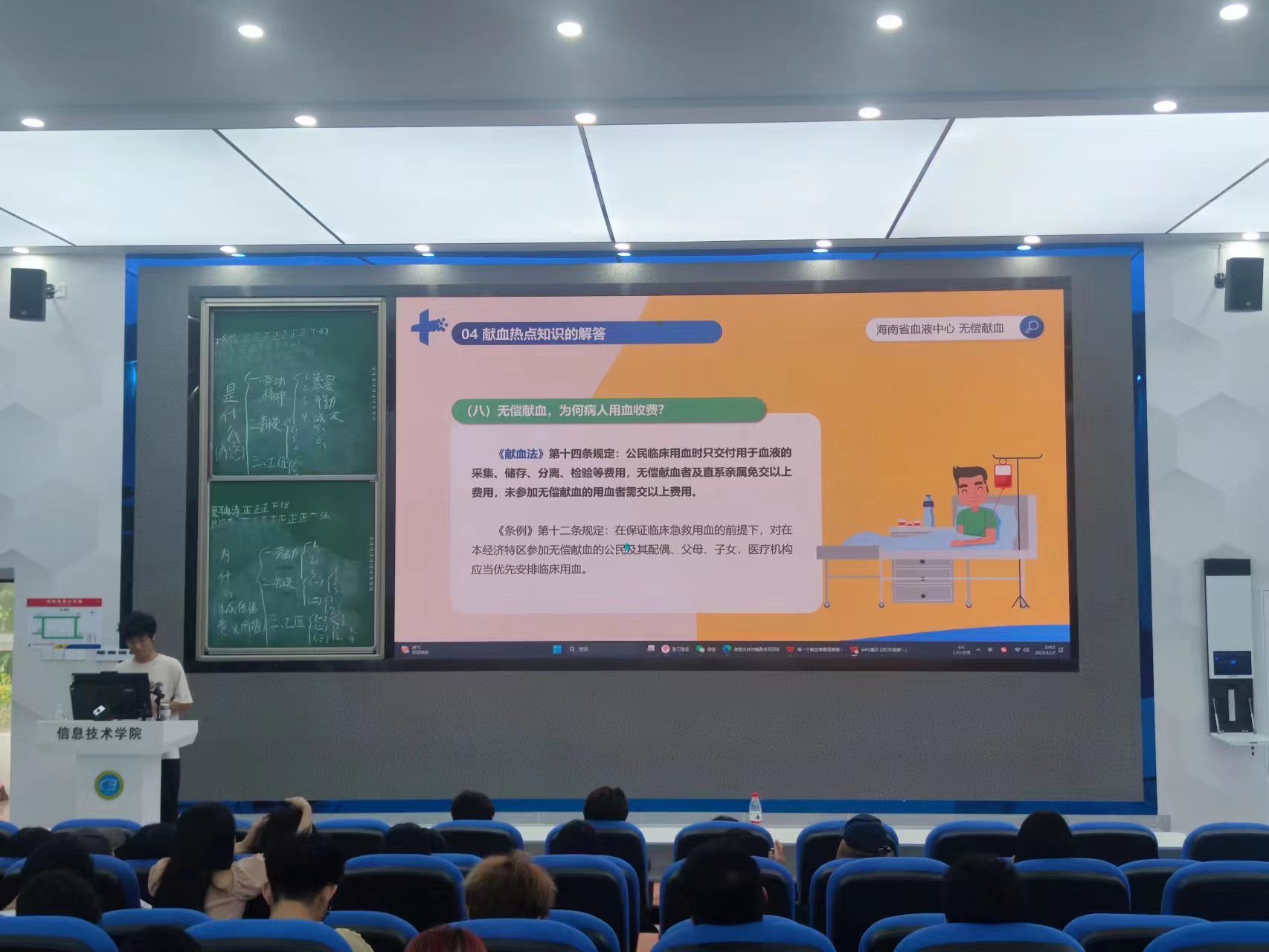 为进一步弘扬志愿服务精神,普及无偿献血知识,鼓励公司员工更加积极地参与无偿献血,bevictor伟德国际青年志愿者协会于11月2 日在4-215开展无偿献血知识讲座。22级数字媒体技术2班全体员工参加讲座,由卢关松同学主持。