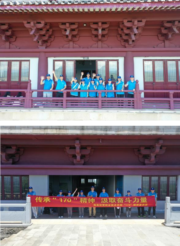 7月4日,“170”宣讲团为践行“170”精神前往了儋州市历史博物馆(儋阳楼),当时正值中午宣讲团顶着烈日,任由脸庞已被晒红晒疼,也咬紧牙坚持着互相扶持着登上儋阳楼最高处,楼顶的景色美不胜收,这景是先辈们奋斗拼搏出来的,是先辈们用牺牲守住的。作为新时代青年的我们生在盛世必须接好这一棒,传承好“170”精神,从中汲取奋斗力量。