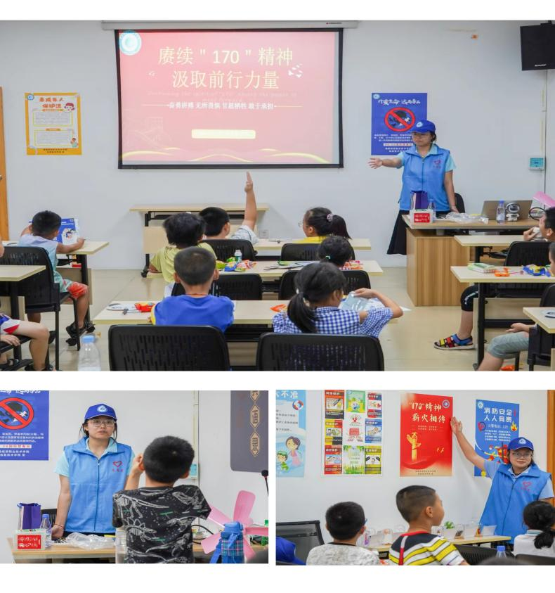 宣讲团以青少年能传承“170”精神,汲取奋斗力量为出发点,用简单易懂的话语与互动方式向同学们讲述前辈们建成松涛大坝所付出的心血与艰辛。修筑高峰时段有超过1600名干部,67000多名民工大家凭借着顽强的意志和必胜的信心,在汛期来临前将松涛大坝修筑至海拔170米(即坝高53米)。宣讲团为了让青少年们能将“170”精神铭记于心,宣讲团员带领着他们用最为洪亮的声音齐声朗诵“170”精神的核心内涵:奋勇拼搏、无所畏惧、甘于牺牲、敢于担当。