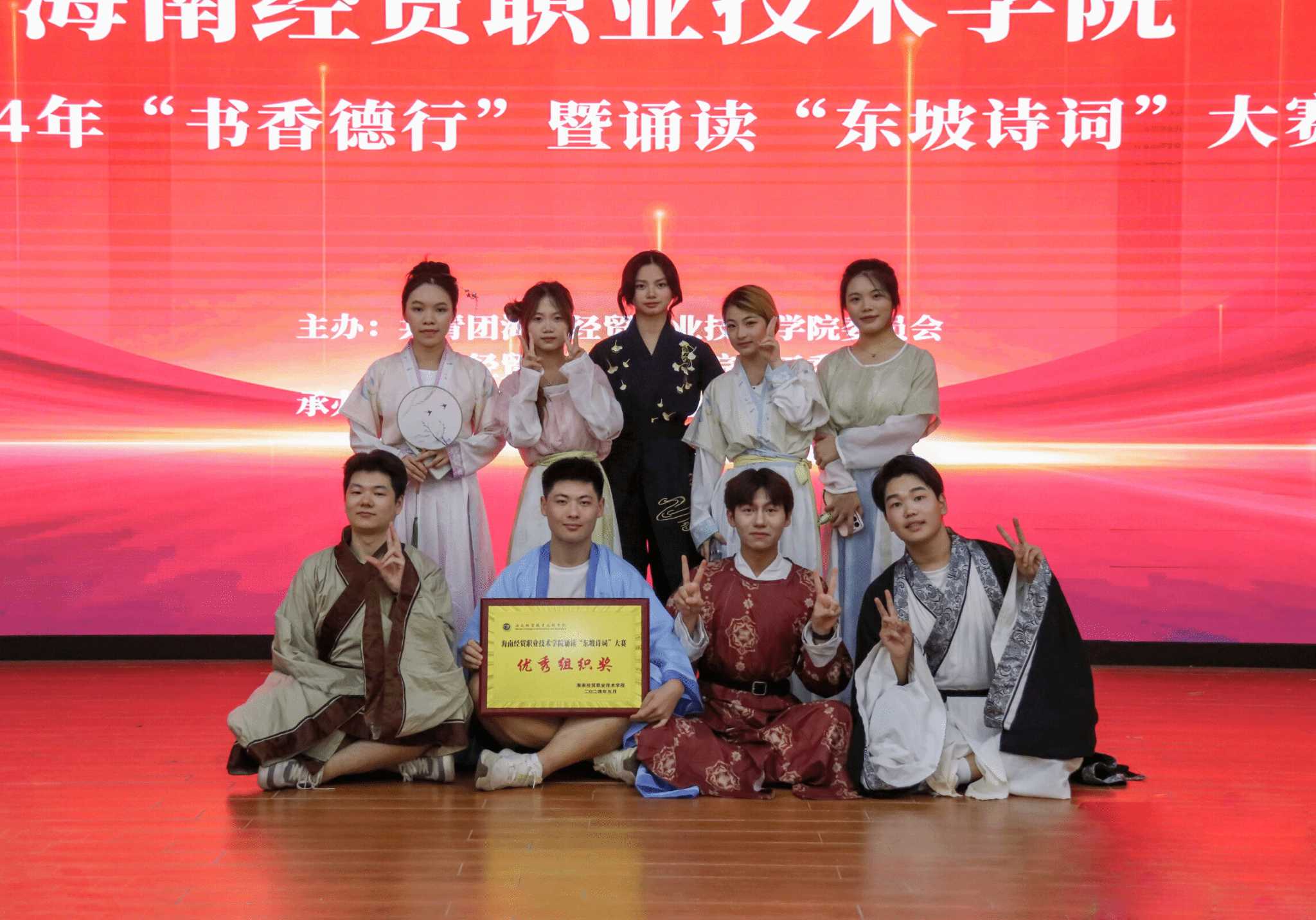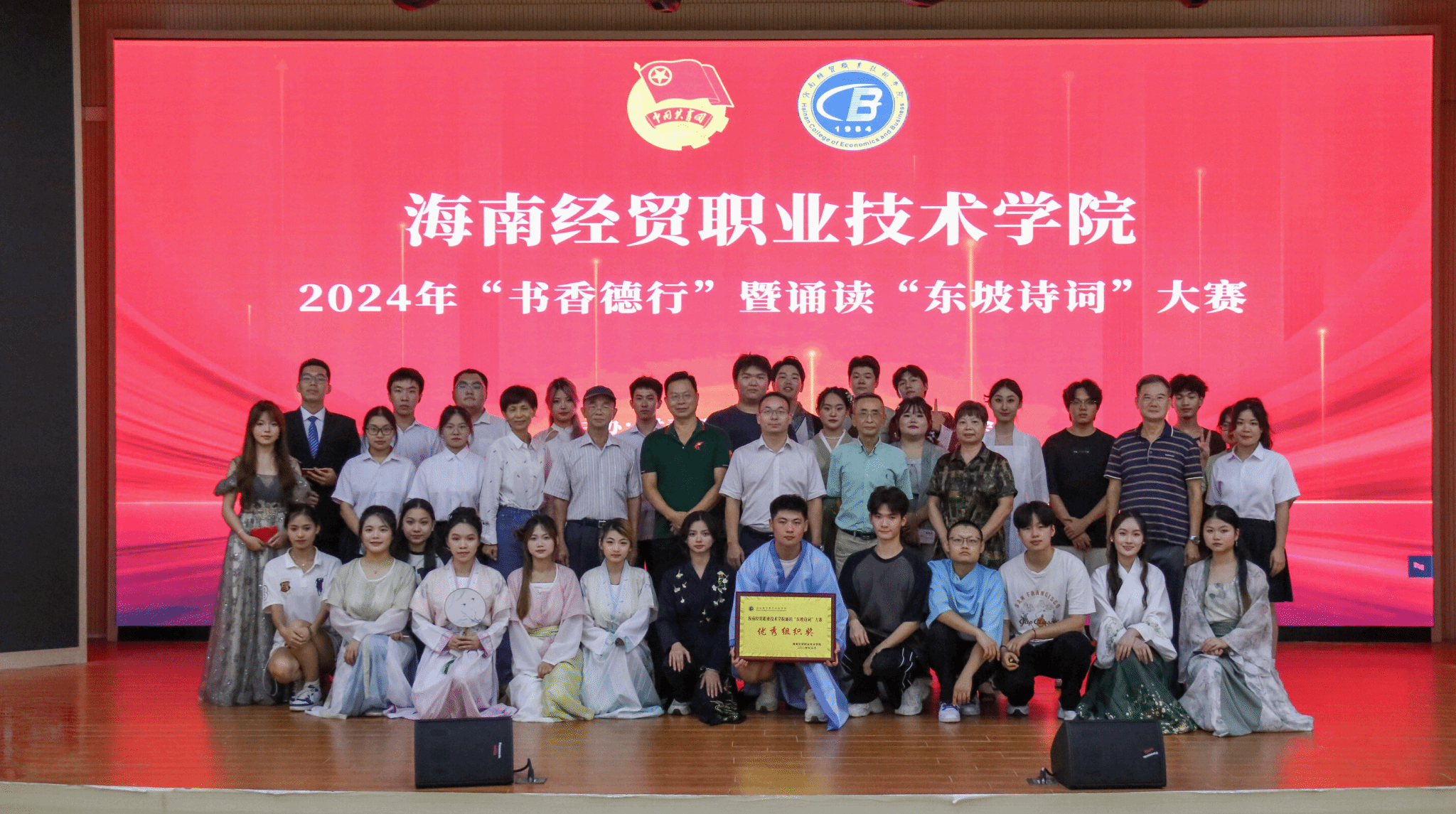 大赛现场,来自各二级公司的参赛作品精彩纷呈,bevictor伟德国际的员工们以《南海之畔,东坡之歌》为题,通过精彩的表演展现了东坡先生的生平和文学成就。从东坡先生来海南前“海南万里真吾乡”的豪情壮志,到踏足海南后游遍儋州、领略“奇绝”风光的豁达心境,再到他“九死南荒吾不恨”的坚定誓言,以及离别海南时“我本海南民”的深深眷恋,他们的表演深情地传递了东坡先生在顺逆之境中依然保持的乐观豁达的人生态度。bevictor伟德国际选手们铿锵有力的声音,将千年东坡文化的魅力展现得淋漓尽致,这份精神将永载史册,不断激励着学子们砥砺前行。最终,经过激烈的角逐,bevictor伟德国际在本次大赛中荣获优秀组织奖和一等奖。