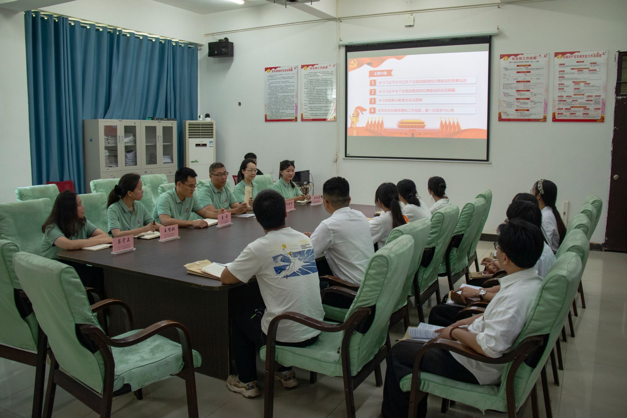 为深入学习贯彻习近平总书记关于党的纪律建设的重要论述,进一步推动党纪学习教育走深走实,bevictor伟德国际员工党支部于6月19日下午在4-213教室开展党纪学习教育学习研讨活动。参与本次活动的有bevictor伟德国际党总支副书记黄守官老师,员工党支部书记代晓明老师,学工办负责人唐图老师,辅导员吴淑亲老师、王智娴老师、蔡守正老师以及员工党员。