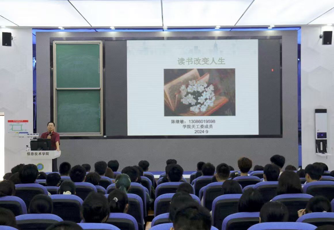 讲座中,陈继敏同志通过引用古今中外的经典读书案例,生动诠释了“书香德行”的深刻内涵。他详细讲解了读书是一道风景、怎样读书以及如何做一个有高附加值的现代文化读书人等四个专题内容,引导新生们领略阅读的魅力。