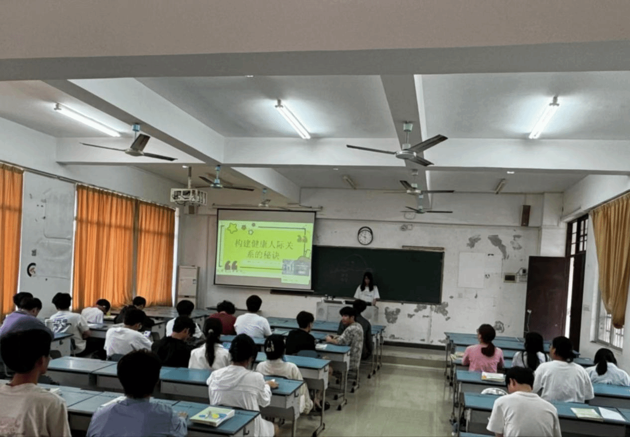 24软件1班以“润心第一课”为主题,在4-215多媒体教室组织班级同学开展人际交往拓展主题活动,通过双手交叉相握的游戏引导同学们认识心理学上的“适应”;通过“快乐传递”活动分享自己的真实故事;最后通过心理小测试帮助同学们释放不良情绪,注入满满的正能量。