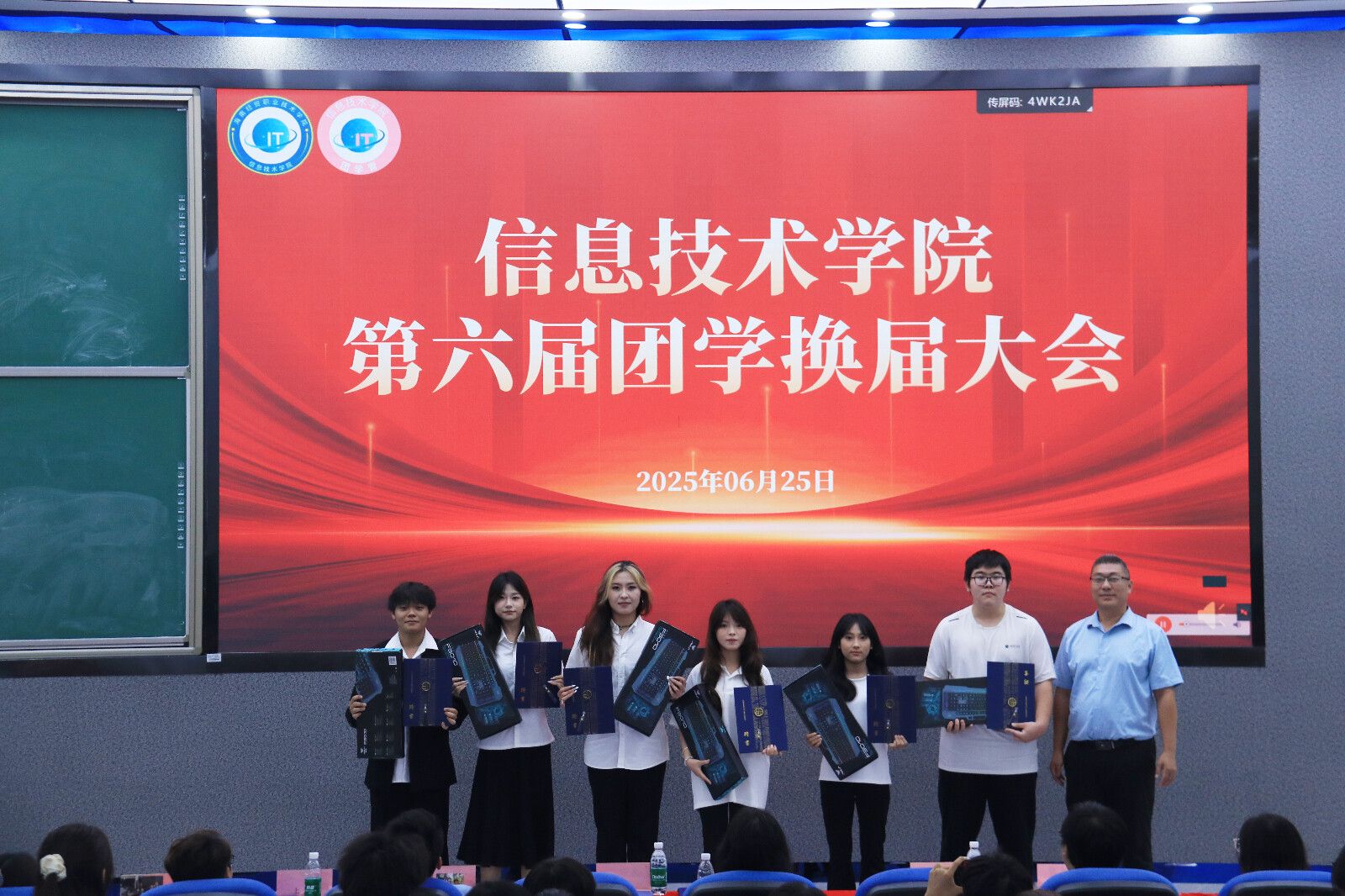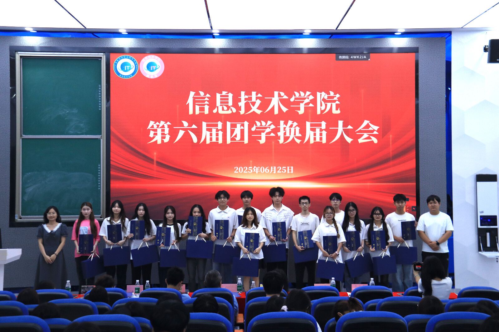 在庄重而热烈的聘书颁发环节,黄守官副书记亲手将聘书授予第五届主席团成员,随后,吴佳华老师与蔡守正老师为第五届团学干部颁发聘书,一张张承载荣誉的聘书,是对他们过去一年兢兢业业、躬身奉献的高度认可。