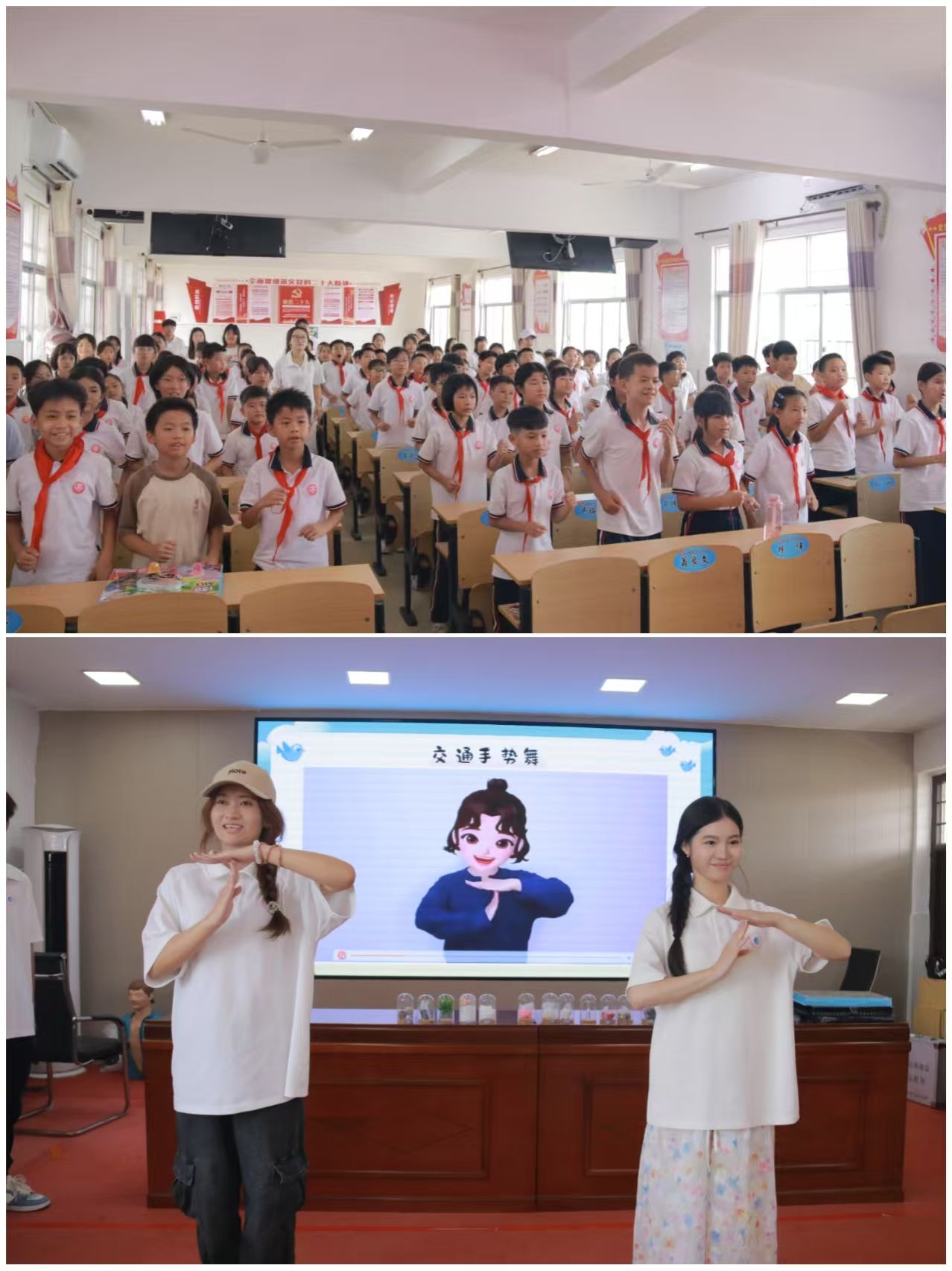 交通安全课程更是别出心裁,将复杂交通指挥手势巧妙转化为趣味舞蹈动作,孩子们在边学边演间,轻松把交通规则烙印于心;同时结合乡村道路岔路繁多的实际情况,着重强调骑行戴盔、避让车辆等要点,全方位为孩子们的出行安全意识加固升级。