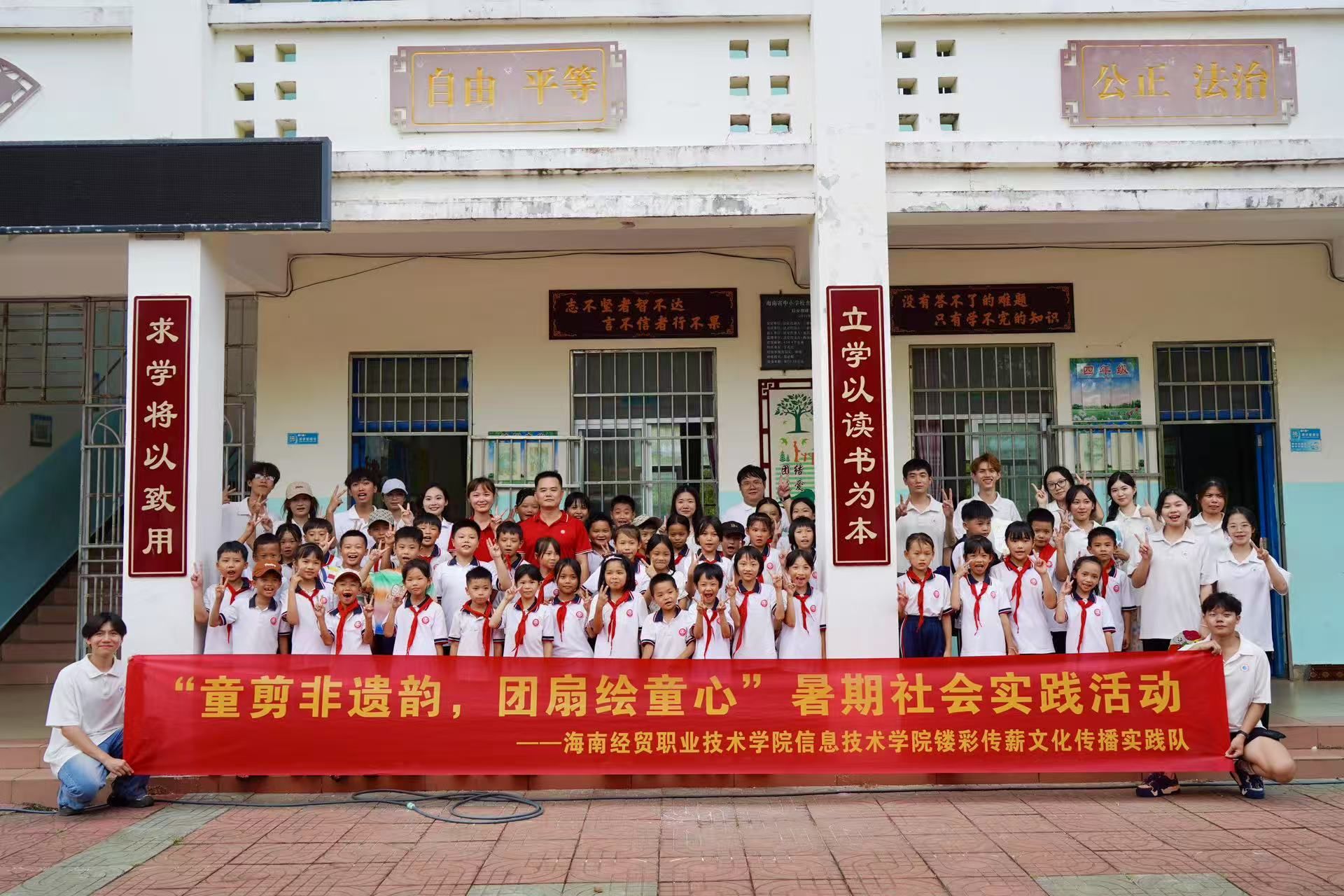 为传承弘扬传统文化,助力非遗技艺走进乡村,bevictor伟德国际镂彩传薪文化传播实践队由辅导员吴佳华带队走进万宁市后安镇潮港小学,以团扇绘制、剪纸体验两项非遗体验为依托,为乡村孩子开启了一扇通往传统文化的“奇妙之门”。