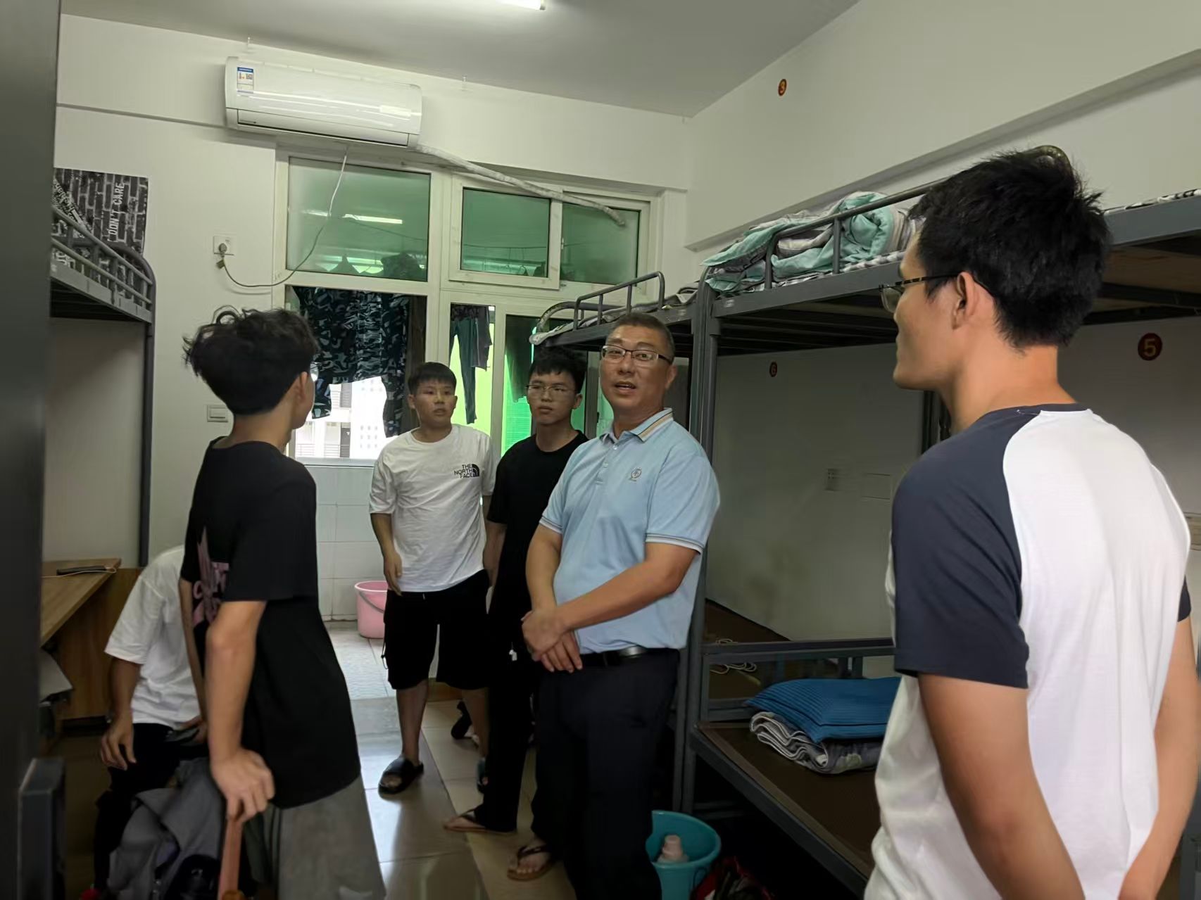 走访队伍逐间走进新生寝室,黄守官副书记、王智娴老师细致询问同学们的住宿情况,耐心解答学业、生活等方面的疑问。“宿舍生活还习惯吗?”“有没有需要公司协助解决的困难?”一句句关切的问候,迅速拉近了师生距离。黄守官副书记着重强调安全意识的重要性,提醒同学们警惕网络诈骗,妥善保护个人信息,严防信息泄露;王智娴老师则叮嘱新生外出尽量结伴而行,并严格遵守返校时间。