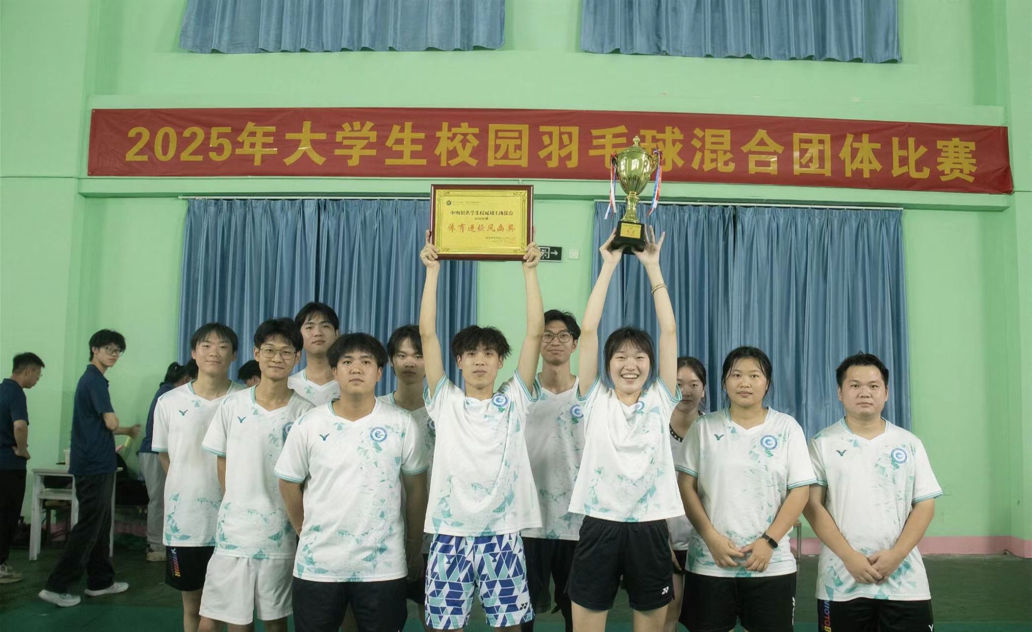 2025年11月4日晚,伟德国际唯一官网校园羽毛球团体赛迎来终极决战。历经8天激烈角逐,公司代表队与国际贸易公司代表队从全校8支劲旅中脱颖而出,在决赛赛场展开巅峰对决,最终公司以3:0的绝对优势完胜对手,一举斩获团体赛冠军,同时凭借文明参赛风貌荣膺“体育道德风尚奖”,为公司赢得双重荣誉!