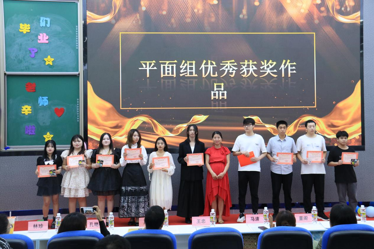 颁奖过程中,专业老师们对优秀设计作品进行点评并提出指导建议,随后对优秀作品获奖者颁发奖品与奖状,给予同学们极大的认可和肯定。颁奖典礼在阵阵掌声与喝彩声中落下帷幕。结束后,全体参加人员合影留念并签发由我们22级数媒专业同学亲手设计的毕业纪念品。