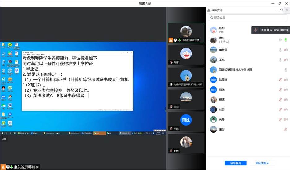 为明确公司毕业生获得准学士学位证条件,6月8日晚上,bevictor伟德国际通过在线视频召开本年度第1次教学指导委员会会议,会议由康东副经理主持,王忠经理、单继周副经理及公司教学指导委员会成员参加了会议。