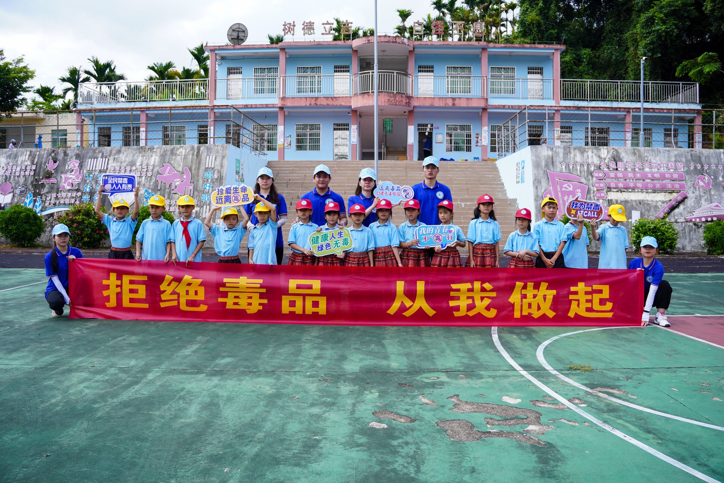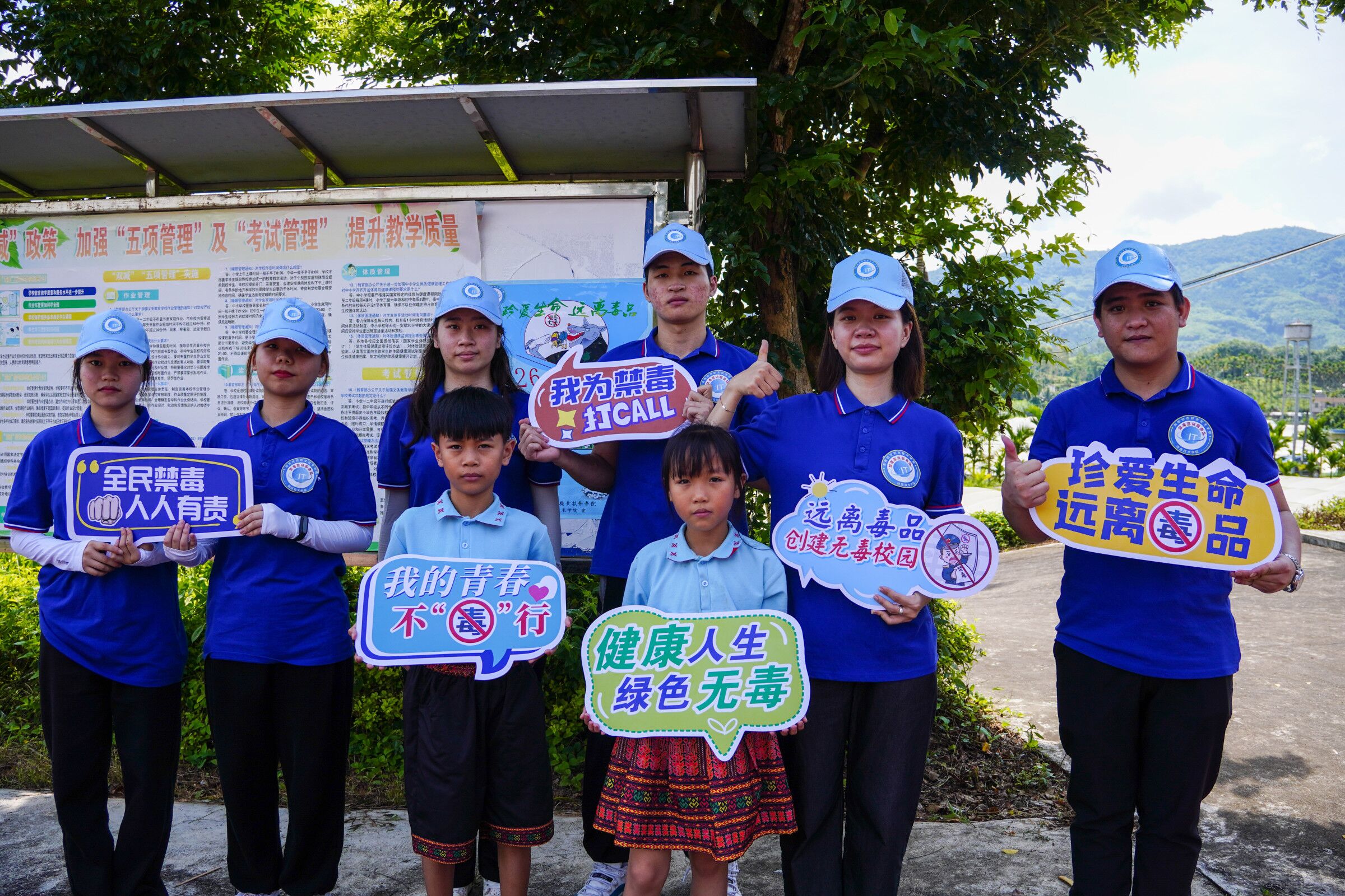 珍爱生命,远离毒品。为了进一步加强校园禁毒宣传,提高同学们的禁毒意识,创建无毒校园,营造良好的校园环境,2022年6月30日,bevictor伟德国际禁毒宣讲服务队在辅导员王智娴、唐图的带领下,前往五指山南圣中心公司南圣教学点开展禁毒宣传教育活动。