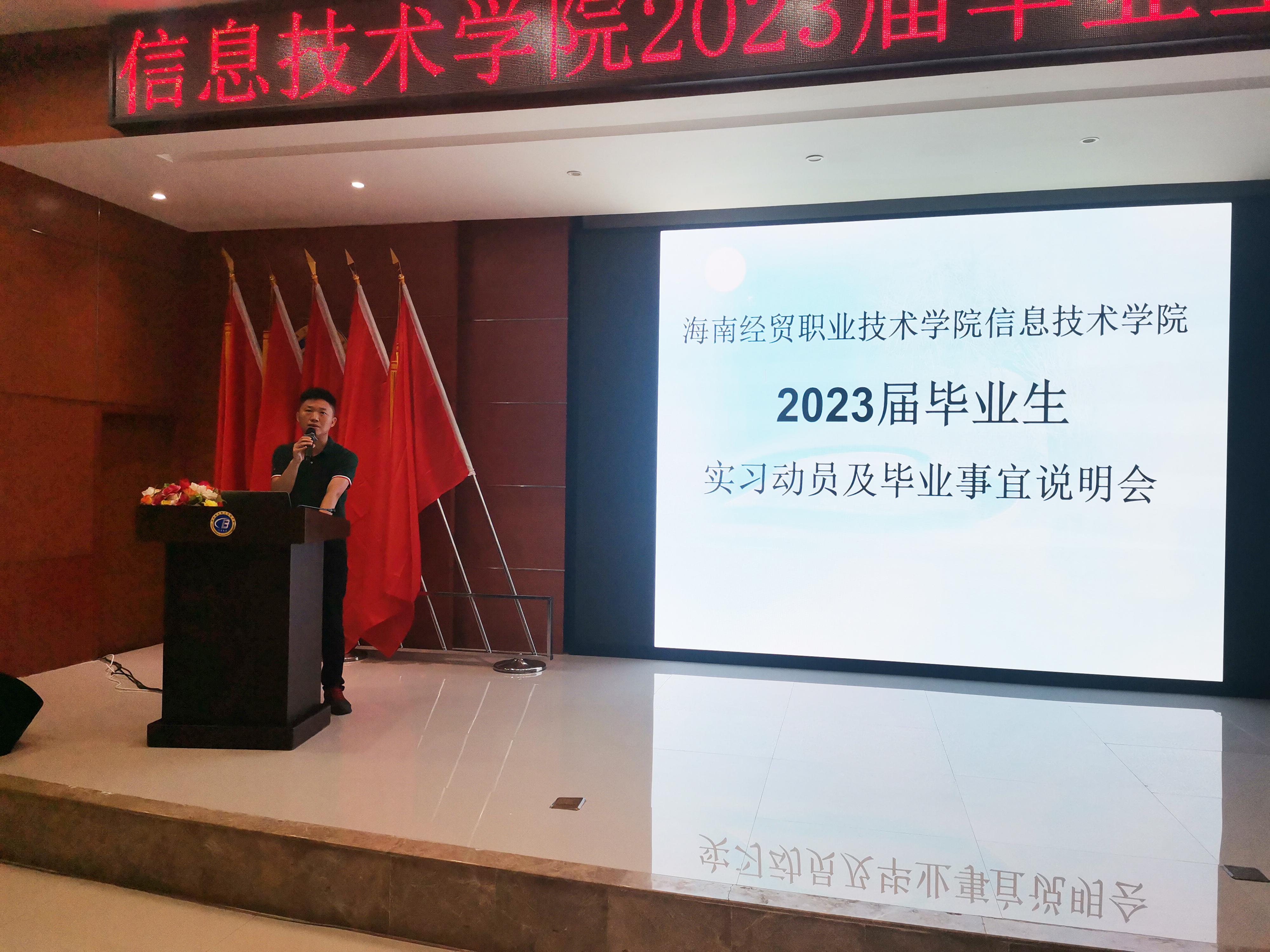 紧接着代晓明老师围绕着2023届毕业生具体工作事项进行详细的安排介绍,强调员工实习期间一定要注意人身财产安全,提醒大家认真进行实习工作的同时不忘及时完成公司各项毕业待办事项,为顺利毕业做好充分的准备!