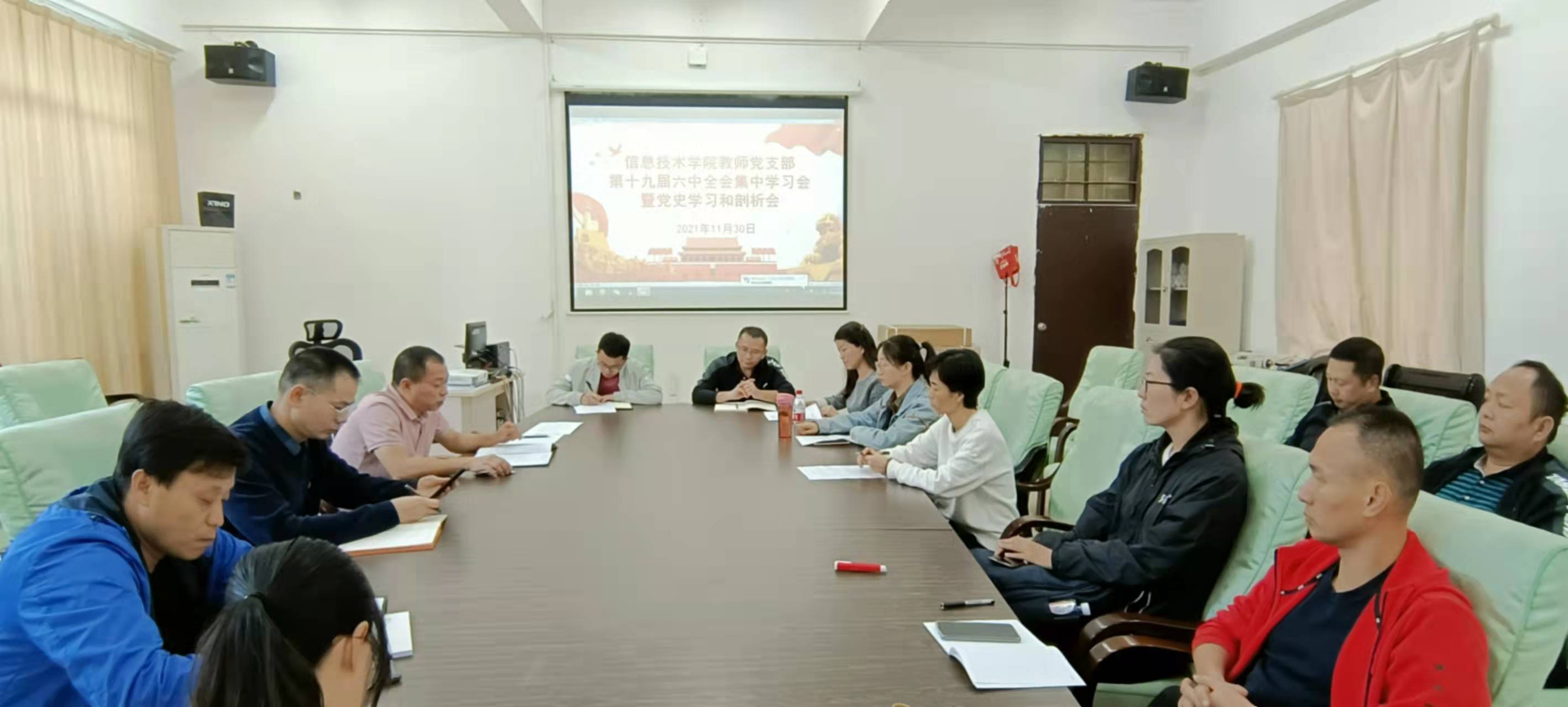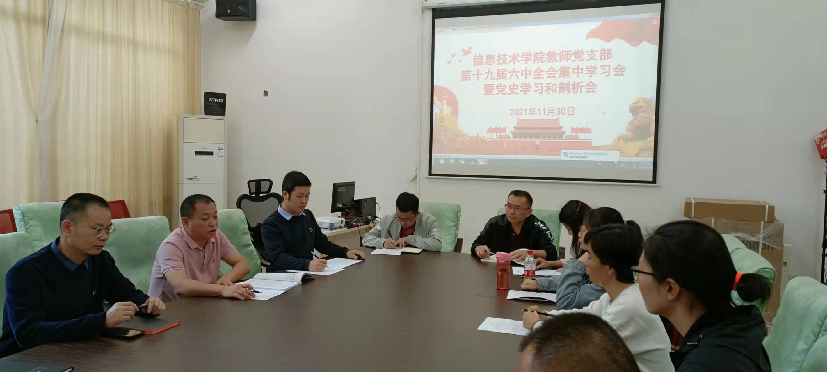 11月30日下午,bevictor伟德国际教师党支部在4-213会议室召开党的十九届六中全会集中学习会暨党史学习和剖析会。会议由公司书记孙金主持,经理王忠、副经理单继周、副经理康东及支部其他教师党员参加了本次学习会。