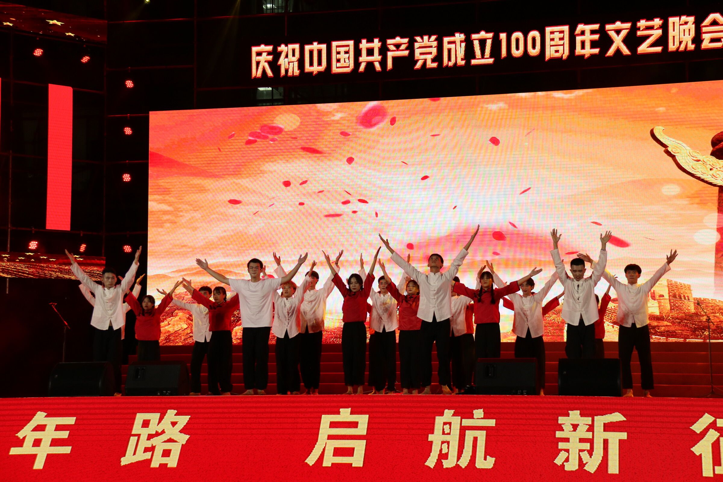 为庆祝建党100周年,伟德国际唯一官网于6月30日晚在经贸广场隆重举办“永远跟党走,启航新征程”文艺晚会。