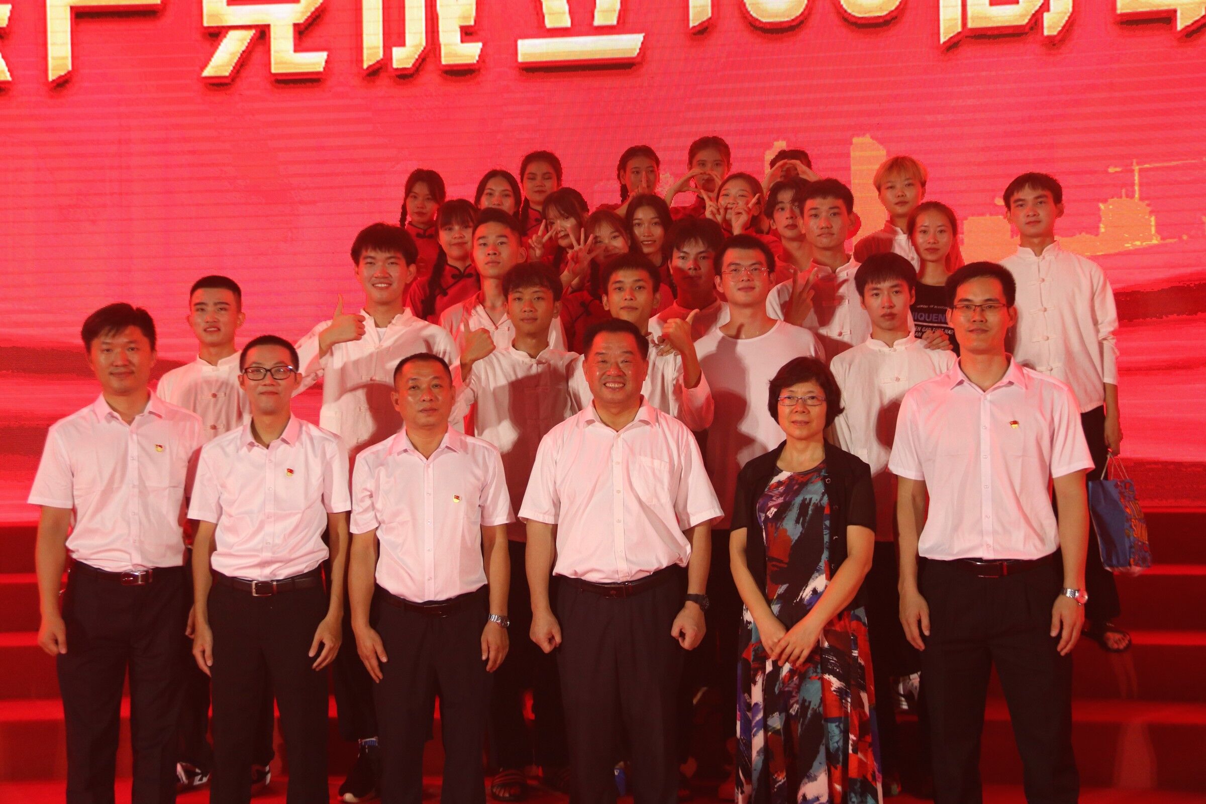 自一个月前,公司25名红色舞蹈队的同学们每天都在紧张有序的排练,他们认真、专注,经常全身都被汗水湿透,腿上也有不少淤青,但他们一致坚持将舞蹈一遍一遍地排练直至娴熟。在排练的过程中,公司党总支孙金书记、麦锐副书记和学工办主任梁其钰老师曾多次到现场指导并给予同学们鼓励,让大家充满信心和斗志。