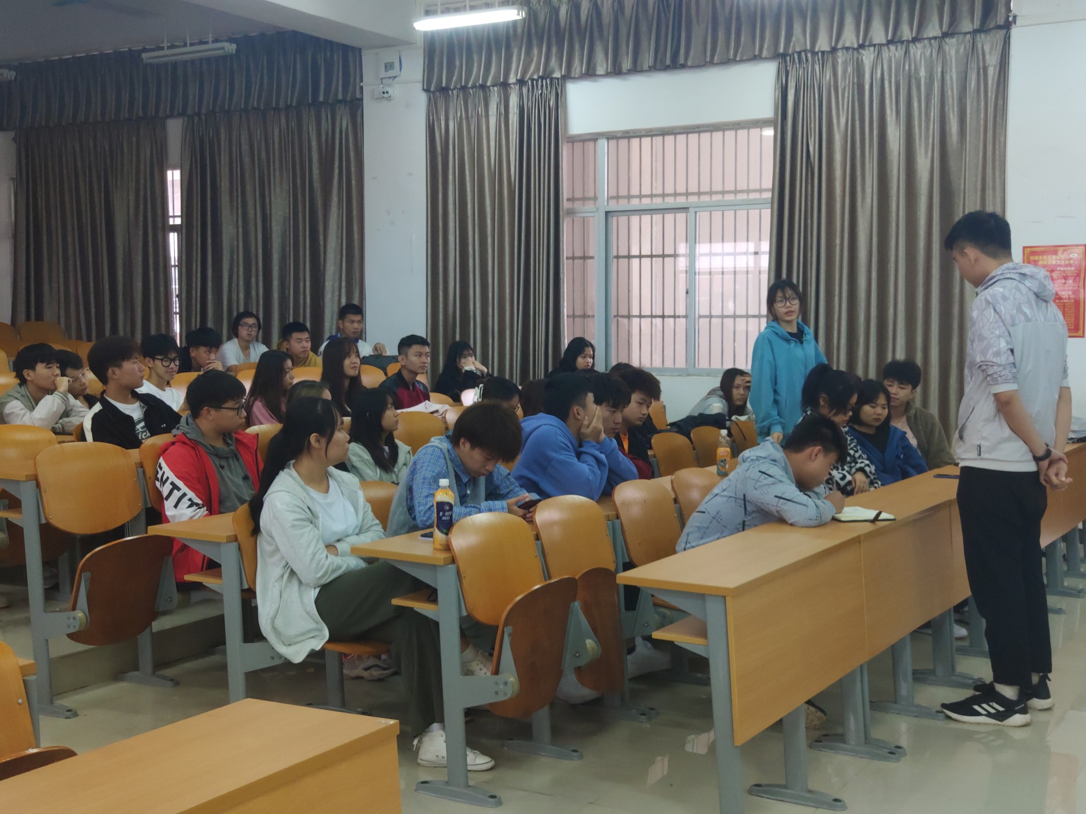 第三项:团学负责人唐图发言,对于元旦游园晚会的内容进行广泛的讨论,需要团学青各部门在实地勘察,材料准备上下功夫为未来游园活动做好充足准备。