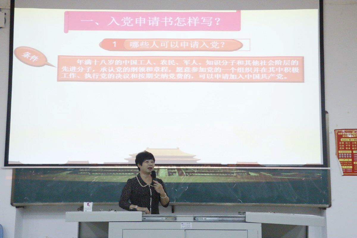 2020年11月15日(青年媒体中心陈佳慧 报道)讯,bevictor伟德国际入党申请书撰写讲座在第二教学楼2-102开展,此次讲座由黄慧娟老师以加入党的工作流程为主题,激励同学们积极写入党申请书,全面理解入党的流程。