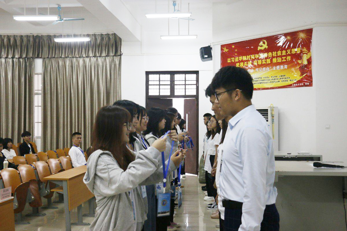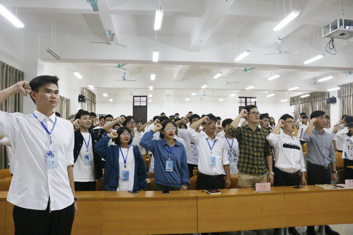 团总支副书记窦粤洋、团学青主席黄文依次发言,表示:“希望大家借鉴传统,不忘初心,时刻铭记自己最初的目标和自身肩负的责任;合理分配时间,做好自己的大学规划”最后,由黄文主席领誓,大会全体成员起立进行宣誓。