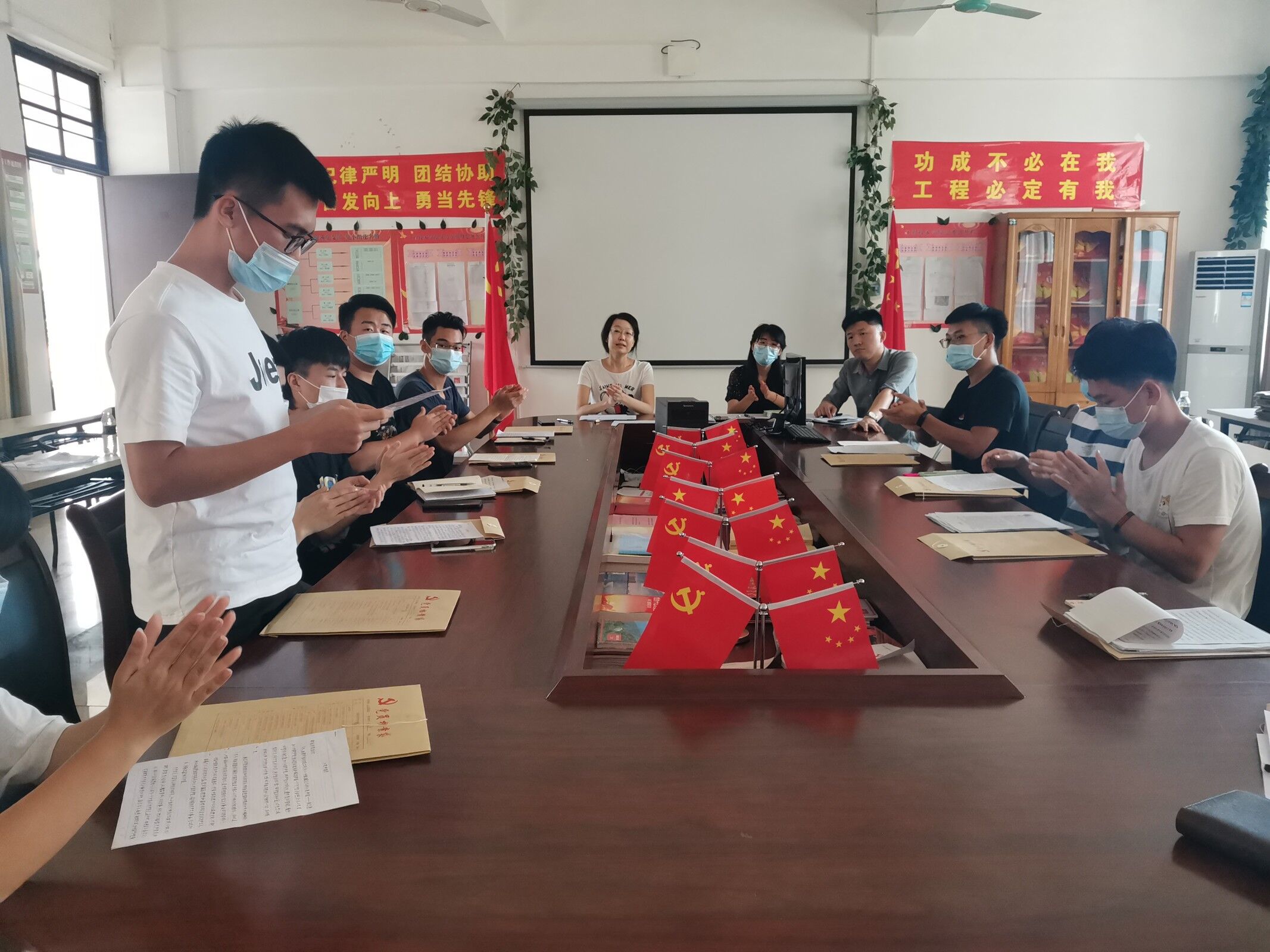 2020年6月16日16:30分(院青年媒体中心 钟智杰报道)讯,公司在2 -406教室召开了工程技术公司员工党支部吸收预备党员大会,本次会议由公司员工党支部书记代晓明老师主持,出席此次会议的有学工办主任梁其钰老师与18级辅导员郭蓉佳老师。会议主要围绕叶俊男等16名发展对象的吸收情况展开。