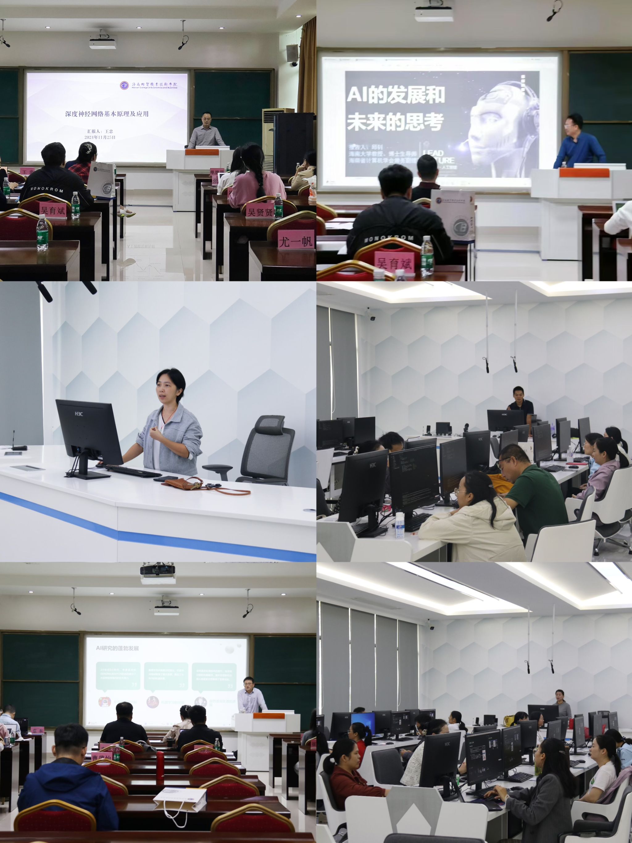 培训班邀请省内外专家,分别从深度神经网络基本原理及应用、AI的发展和未来思考、人工智能时代的高职教育变革与创新:全工作流赋能与未来展望、服务机器人开发与应用、AI 技术实现工作高效化的创新实践、AI模型训练实践等专题展开讲授和研讨。学员反应良好,表示此次授课对工作实践具有较强的指导性和可操作性。