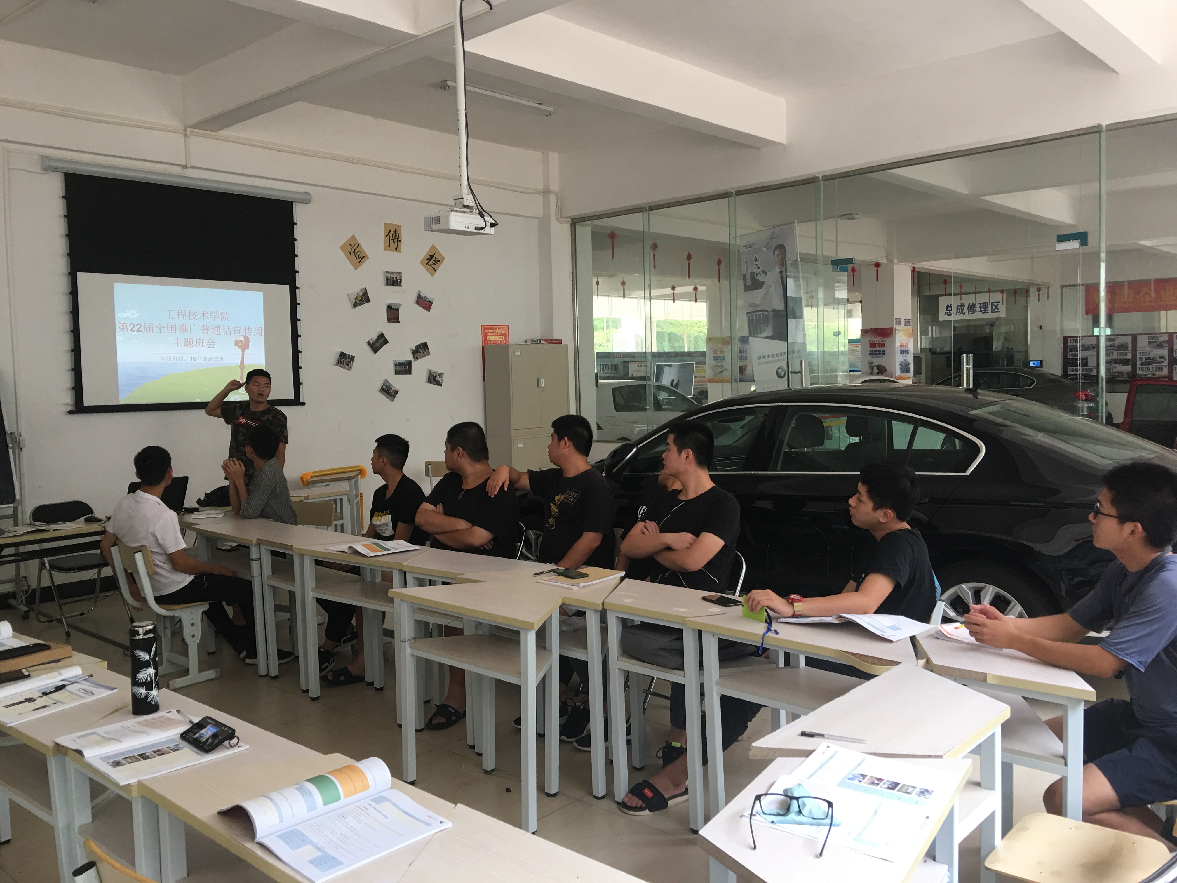 2019年9月29日(院青年媒体中心报道)讯,2019年9月16日—22日是第22届全国推广普通话宣传周。为全面落实国家语言文字的方针政策和法律法规,加强全体员工的普通话,传承发展中华民族优秀传统文化,9月29日,工程技术公司2018级各班成功组织开展推广普通话宣传周主题班会。