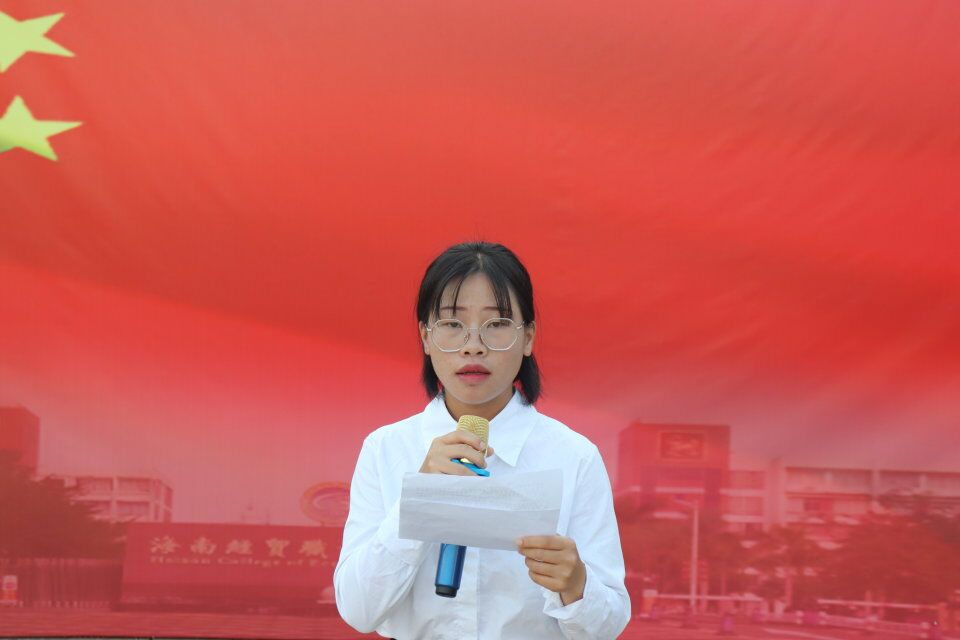争做海南脊梁”主题开展活动,由公司团学青副书记李家欣主持本次升旗仪式,大会第一项:国旗护卫队出旗;大会第二项:升国旗、奏国歌、行注目礼;大会第三项:国旗下讲话,本次演讲的同学是19级网络一班李秋玉,演讲主题是“培育和实践社会主义核心价值观”,她与大家分享了作为老员工在践行社会主义核心价值观中要着重落实于行动上、应加强自身业务学习、树立服务理念努力实现自我价值、勇于承担社会责任等;陈亚芳老师国旗下的讲话中提出了“加强员工的自我管理”、“牢记校训,学以致用”,倡导公司员工在老员工活中对自己的未来进行科学规划,并祝愿每位同学能够找到自己的人生答案。