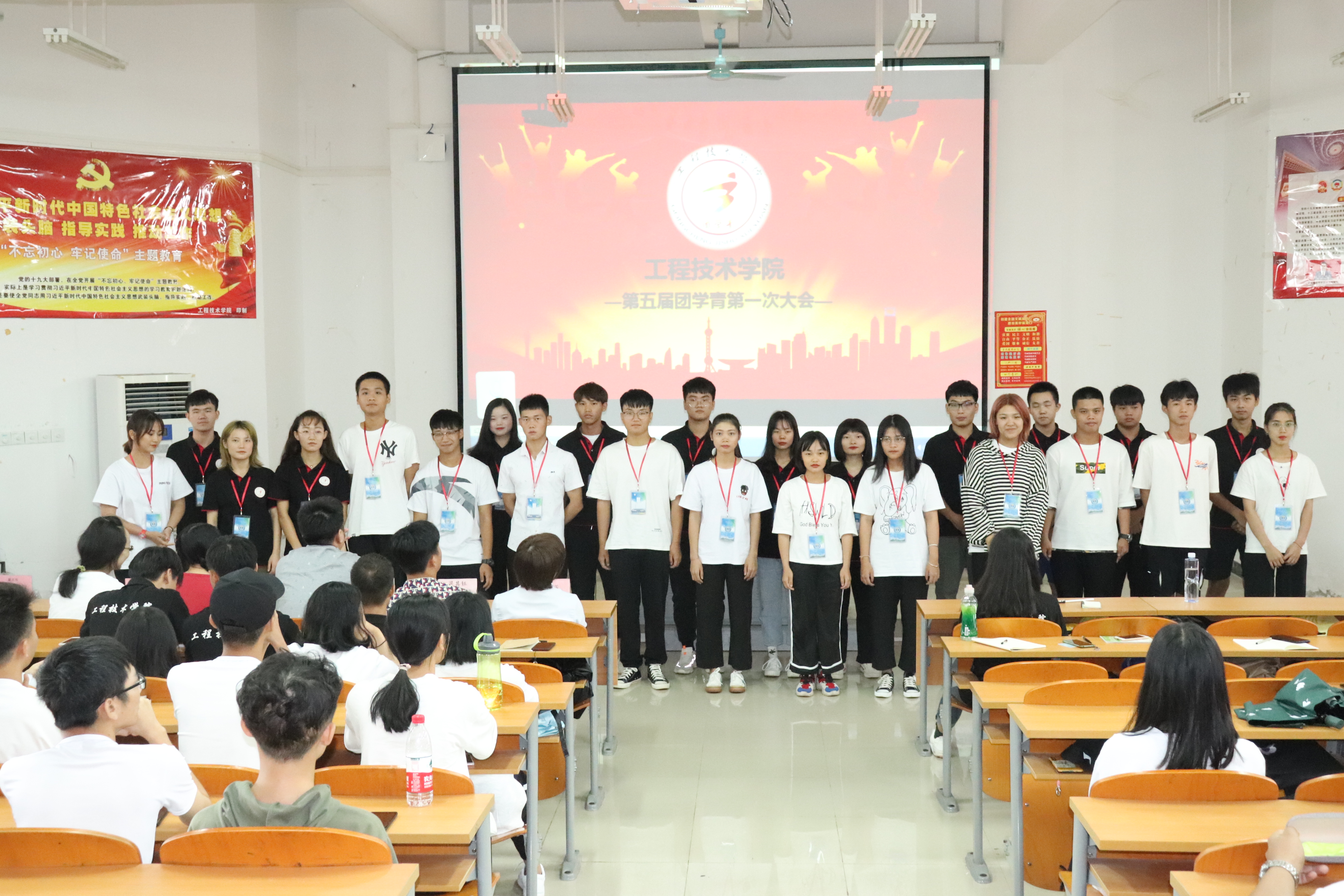 梁其钰、鄢兴祥、周恺老师依次上台讲话,指出“团学青是服务于全体员工的群众性组织,是一个服务性、奉献性的组织,是在同学们需要时,代表全体员工利益的组织;我们工程的员工工作一直做得比较好,这里面有领导的殷切关怀,更是与全体团学青成员的精诚合作、努力奋斗是分不开的,现在是在团学青转型的关键时期,我们新一届团学青不能吃老本,大家要团结协作,才能书写我们的成绩,做出我们的工科特色,展现团学青群体应有的风采”。最后,由叶俊男领誓,大会全体成员起立进行宣誓。