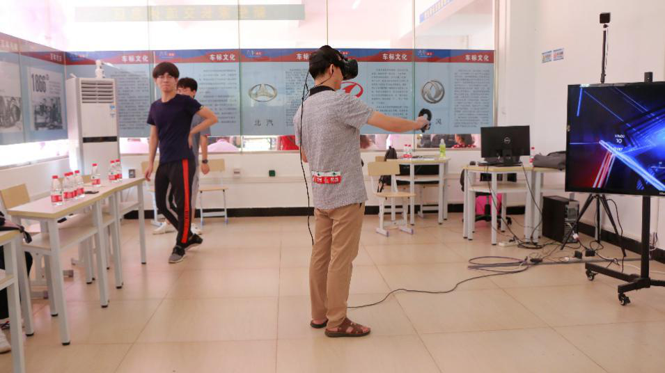 为了更好的让新生详细了解公司的专业指向,在会场的休闲娱乐区,我们安置了拍摄场景、快速照片免费打印及关于数字媒体专业向的VR体验室;另外,在会场的休息区,我们配有桌椅板凳及茶水等,使每位同学、每位家长都能更好的得到休息,缓解疲劳。最后,老师们合影留念。