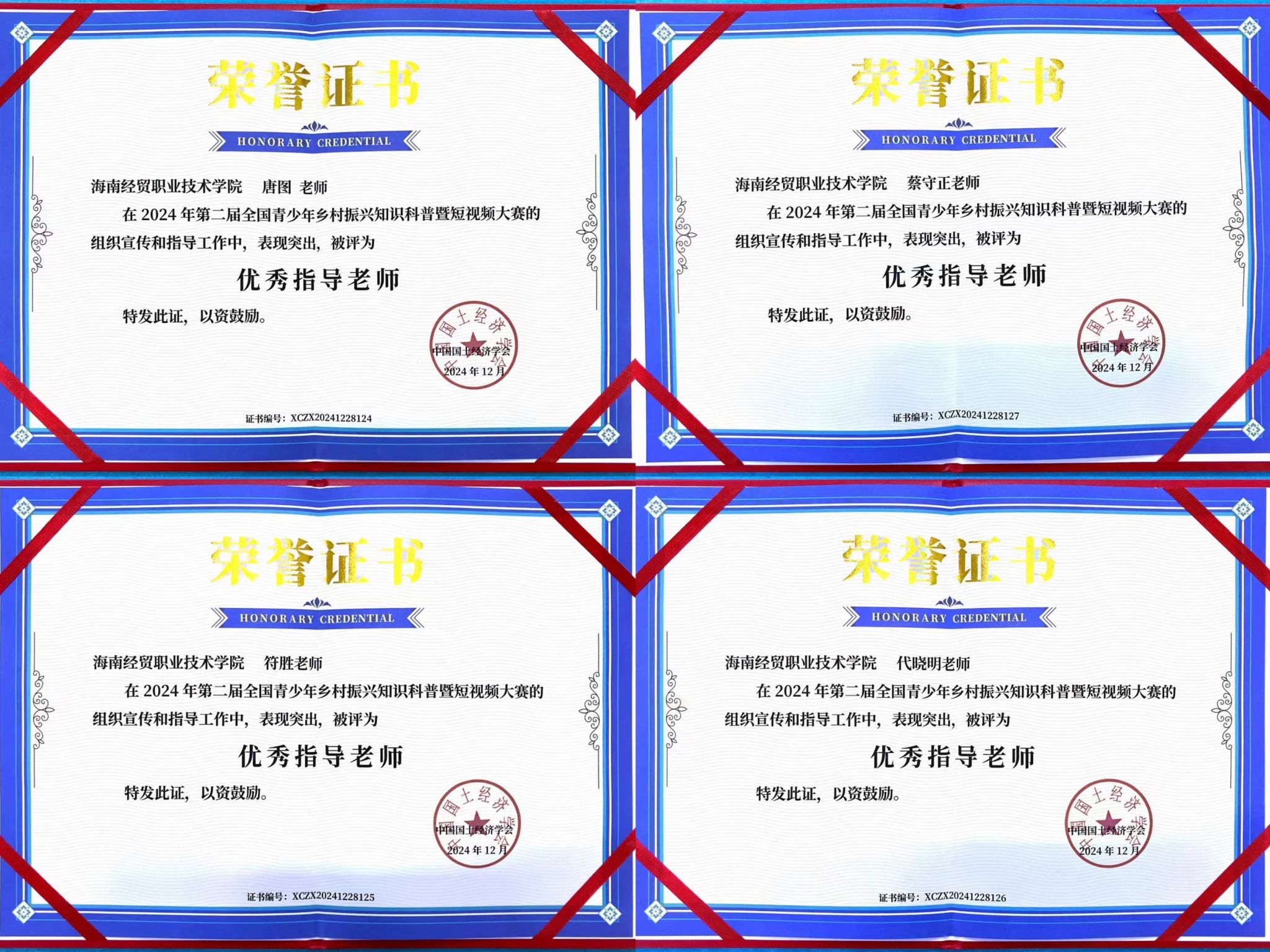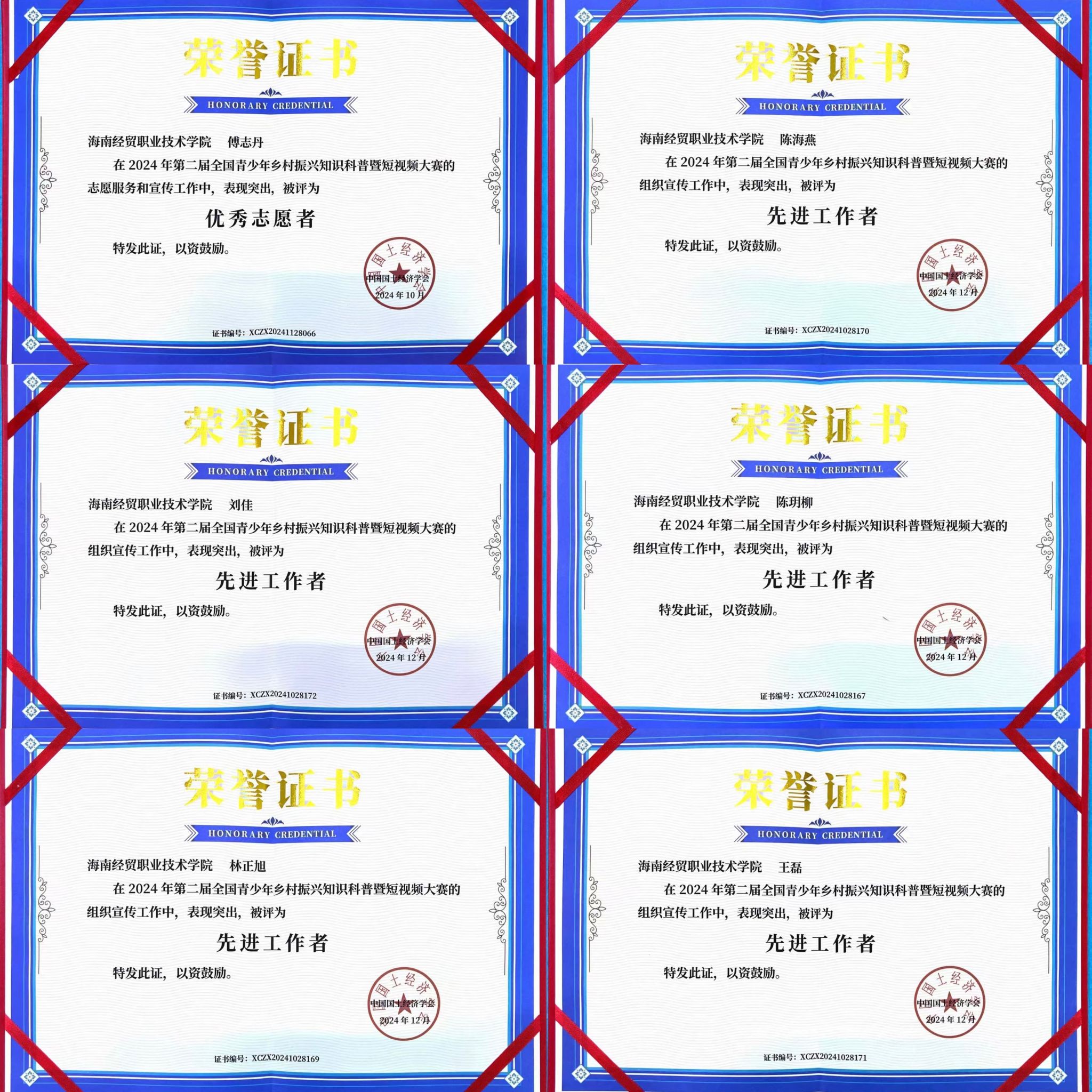 近日,由中国科协科普部指导,中国国土经济学会主办的第二届全国青少年乡村振兴知识科普暨短视频大赛圆满落幕。信息技术公司团总支获评先进单位,陈海燕、王磊、傅志丹等6人获评先进工作者或优秀志愿者称号,唐图、蔡守正、符胜、代晓明等4位教师荣获优秀指导教师。