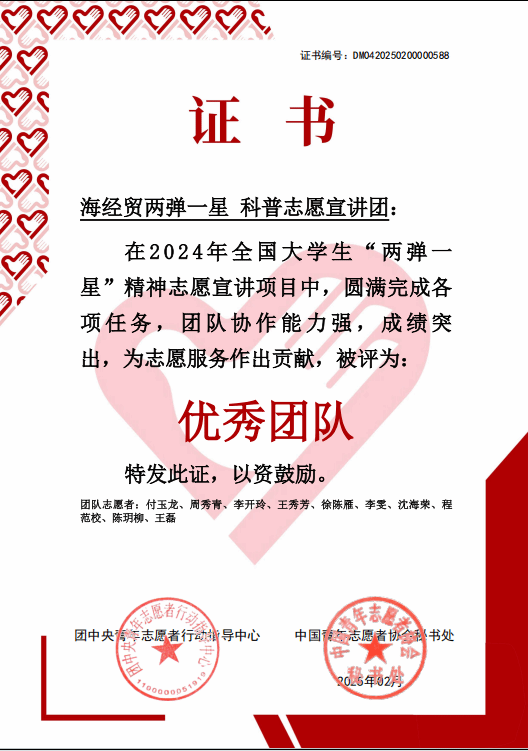 近日,团中央青年志愿者行动指导中心和中国青年志愿者协会秘书处联合公布了2024年全国老员工“两弹一星”精神志愿宣讲项目“优秀团队”名单,公司“两弹一星”科普志愿宣讲团在立项的1000支团队中脱颖而出,荣获2024年全国老员工“两弹一星”精神志愿宣讲项目“优秀团队”,全国仅有100支团队获此殊荣!